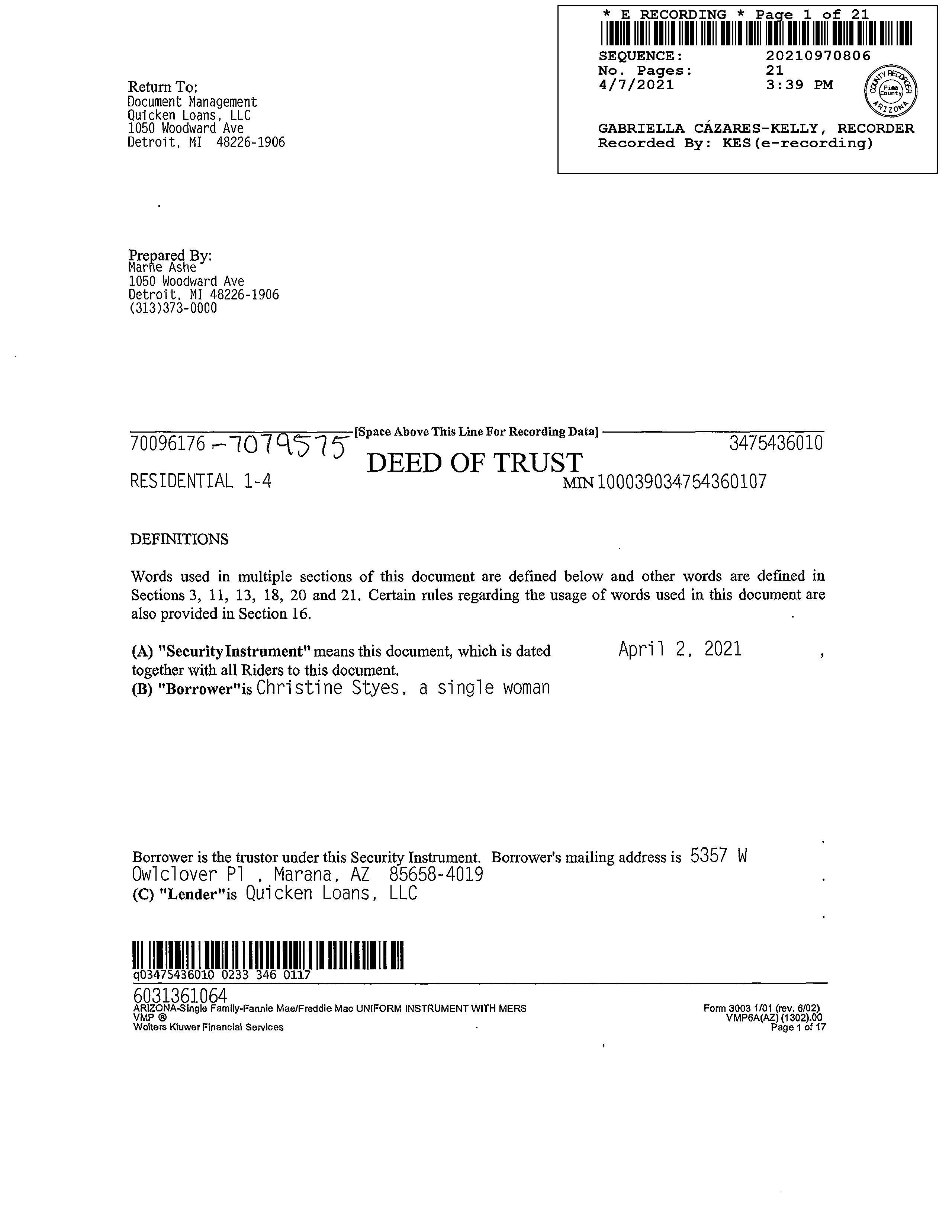 Recording Date : 03/30/2021