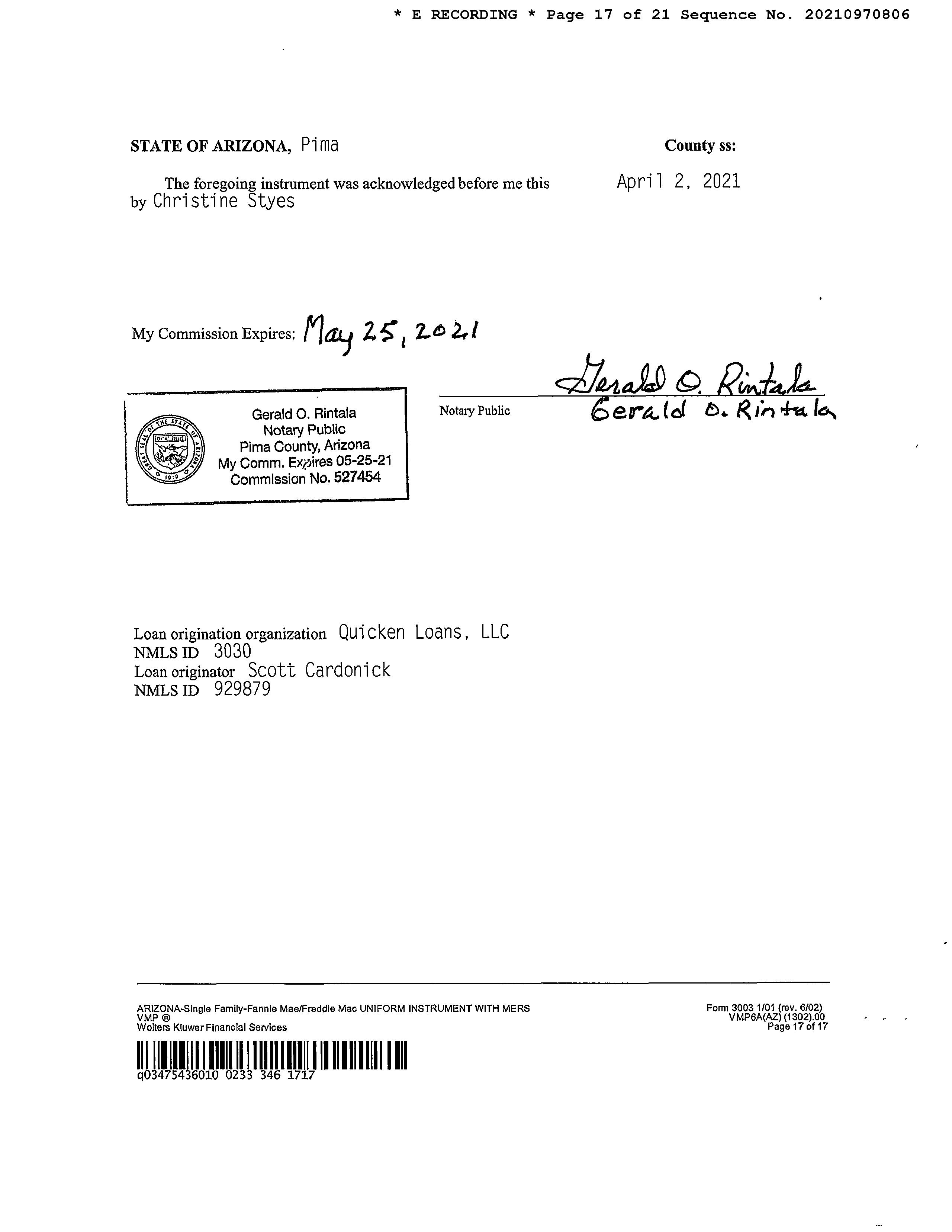 PIMA, AZ Document:DED BEN 2021.82.0950 Page:1 of 2 Printed on:3/15/2023 11:05 AM Branch :FC0 User :JSTI