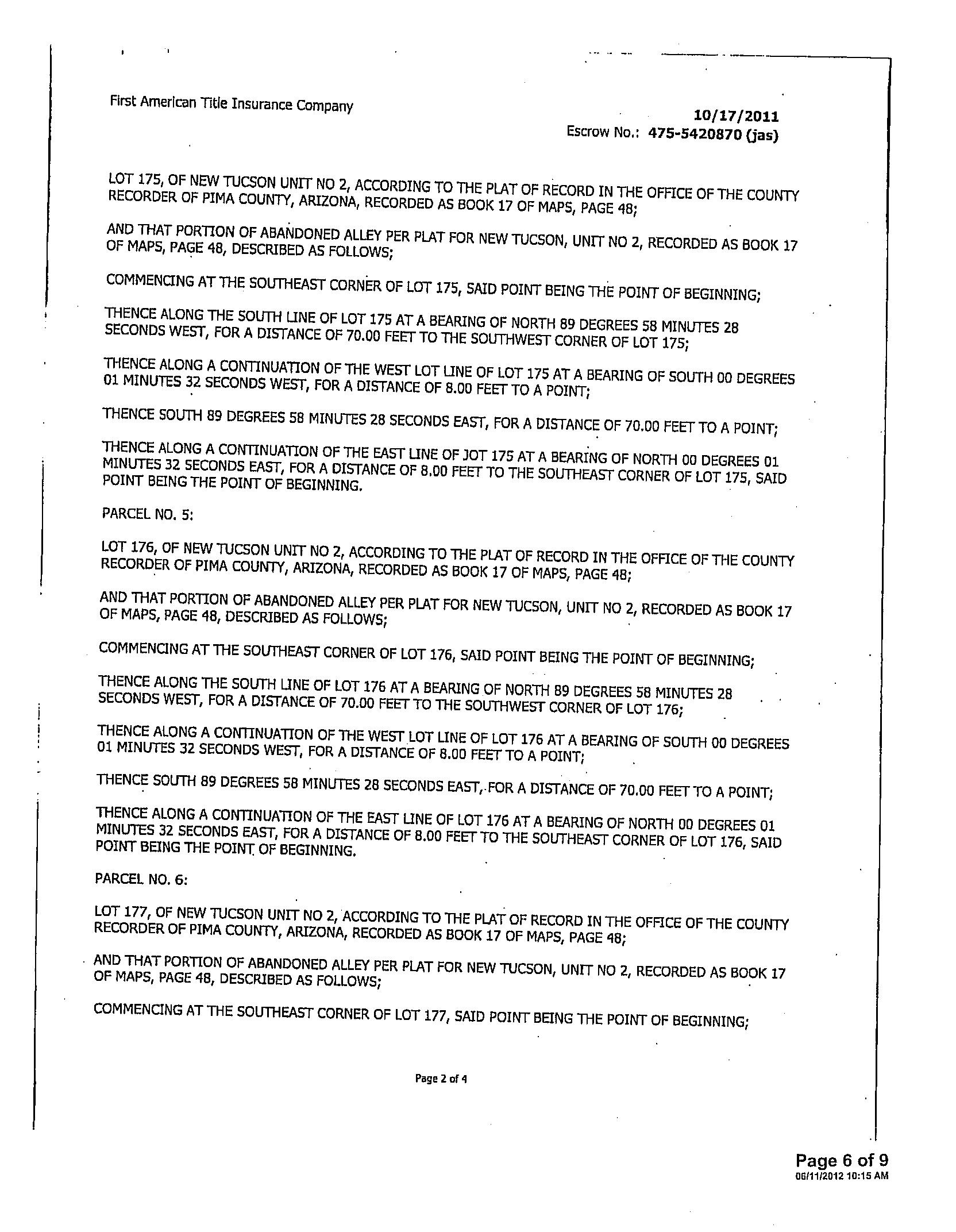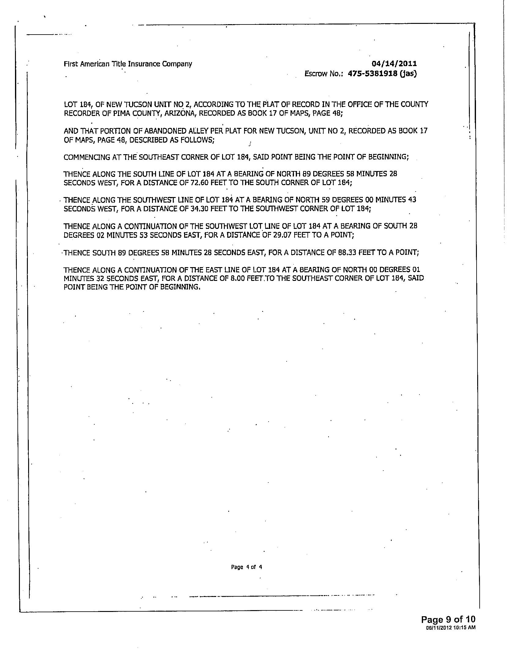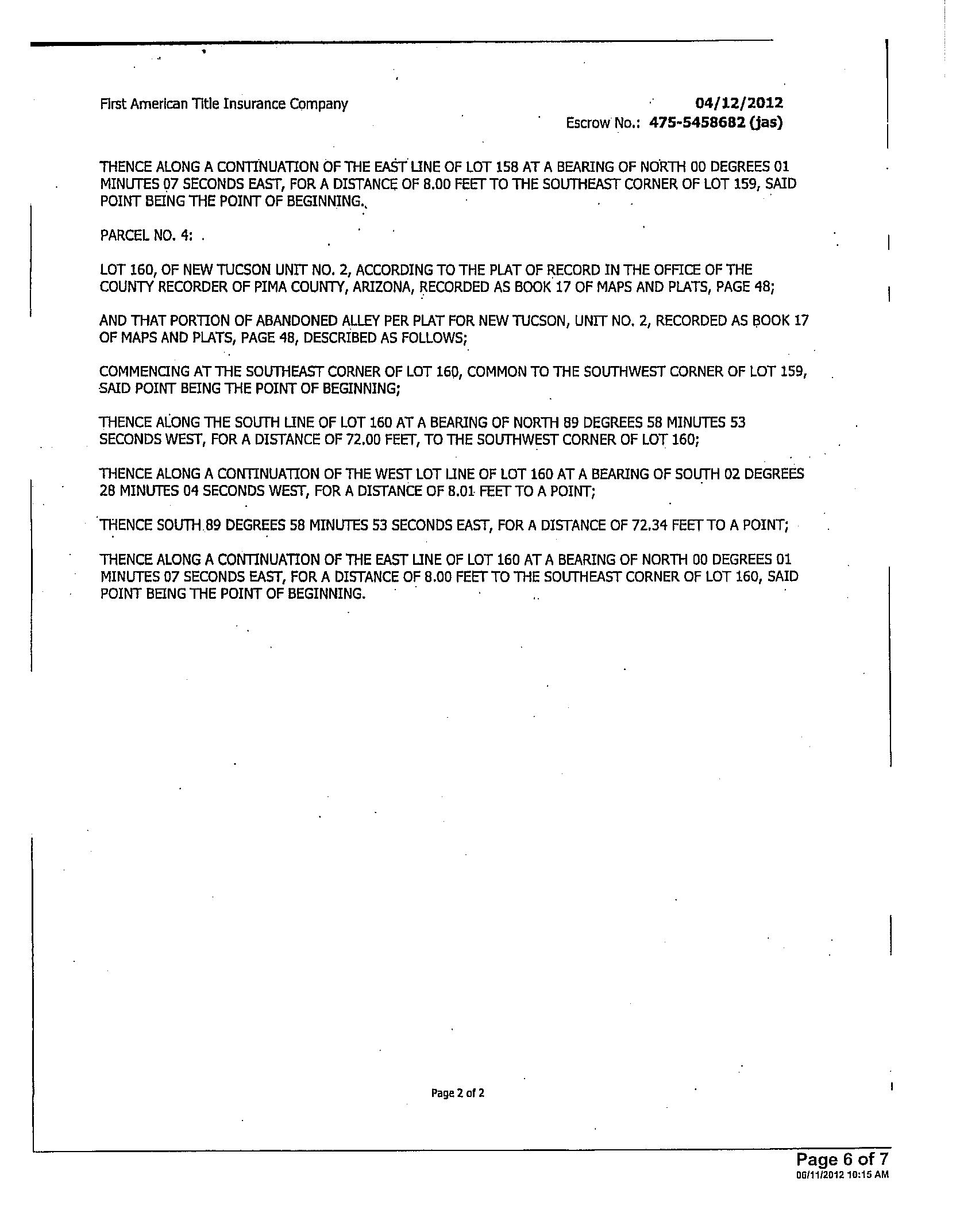 Legal Description : New Tucson Unit No 2 Lot 122