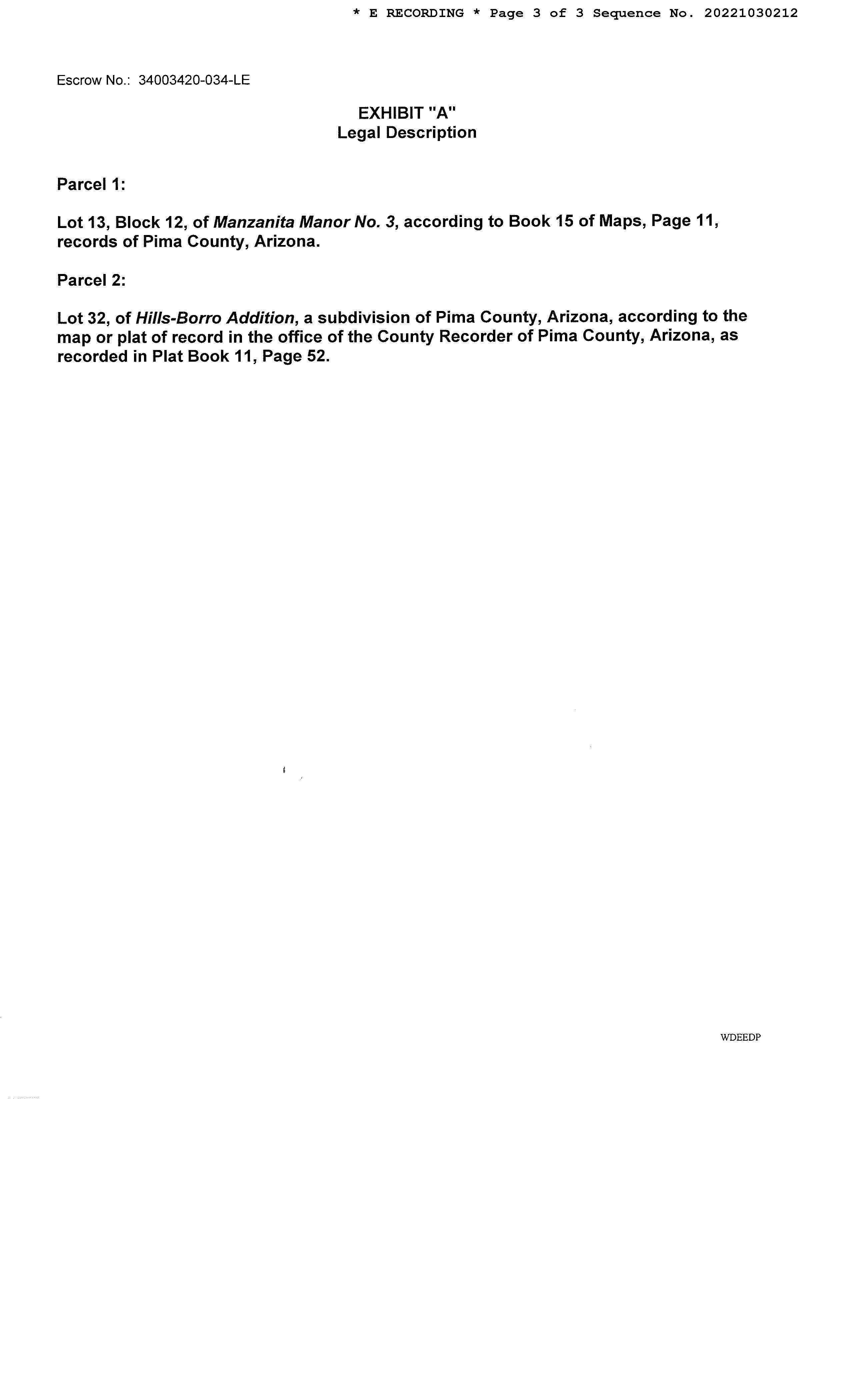 #11 2550 W Kerry Dr Tucson Az 85746 Owner Name: Spousai Dk F J Living /Kmieciak Jonathan W APN / Alternate APN: 137-14-2610 / Deed Type: Warranty Deed Land Use: Sfr Subdivision / Tract: Manzanita Manor 04 / Lot Size: 8,472 Year Built / Eff: 1979 / Rec. Date / Price: 07/08/2022 / $275,000 Living Area: 1,503 # of units: Document #: 1890362 Bedrooms: Pool: Total Tax Value: $126,408 Bath(F/H): / #12 3002 W Mexico St Tucson Az 85746 Owner Name: Ojeda Jose R A /Fimbres Lessy M APN / Alternate APN: 137-16-1160 / Deed Type: Warranty Deed Land Use: Sfr Subdivision / Tract: Manzanita Terrace / Lot Size: 8,814 Year Built / Eff: 1973 / Rec. Date / Price: 11/02/2021 / $253,000 Living Area: 1,498 # of units: Document #: 3060515 Bedrooms: Pool: Total Tax Value: $140,118 Bath(F/H): / #13 3000 W Alaska St Tucson Az 85746 Owner Name: Lopez Jose / APN / Alternate APN: 137-16-1460 / Deed Type: Warranty Deed Land Use: Sfr Subdivision / Tract: Manzanita Terrace / Lot Size: 8,709 Year Built / Eff: 1973 / Rec. Date / Price: 03/16/2022 / $305,000 Living Area: 1,593 # of units: Document #: 750135 Bedrooms: Pool: Total Tax Value: $146,180 Bath(F/H): / #14 3028 W Calle Rosalinda Tucson Az 85746 Owner Name: Palmer Joseph /Palmer Jennifer APN / Alternate APN: 137-35-0530 / Deed Type: Warranty Deed Land Use: Sfr Subdivision / Tract: Tres Leones / Lot Size: 10,012 Year Built / Eff: 2002 / Rec. Date / Price: 01/18/2022 / $278,000 Living Area: 1,339 # of units: Document #: 180398 Bedrooms: Pool: Total Tax Value: $155,166 Bath(F/H): / #15 3102 W Holladay St Tucson Az 85746 Owner Name: B & L Gtz Investments Llc / APN / Alternate APN: 137-16-3380 / Deed Type: Warranty Deed Land Use: Sfr Subdivision / Tract: Manzanita Terrace / Lot Size: 9,936 Year Built / Eff: 1973 / Rec. Date / Price: 02/10/2022 / $215,000 Living Area: 1,672 # of units: Document #: 410565 Bedrooms: Pool: Total Tax Value: $149,044 Bath(F/H): / #16 3071 W Vande Loo St Tucson Az 85746 Owner Name: Katzer Susan M /Smith Christopher J APN / Alternate APN: 137-16-3580 / Deed Type: Warranty Deed Land Use: Sfr Subdivision / Tract: Manzanita Terrace / Lot Size: 8,195 Year Built / Eff: 1973 / Rec. Date / Price: 03/28/2022 / $310,000 Living Area: 1,526 # of units: Document #: 870690 Bedrooms: Pool: Total Tax Value: $140,695 Bath(F/H): / Customer Name : Jeremiah Stiffler Customer Company Name : First American Prepared On : 08/29/2022 © 2022 CoreLogic. All rights reserved