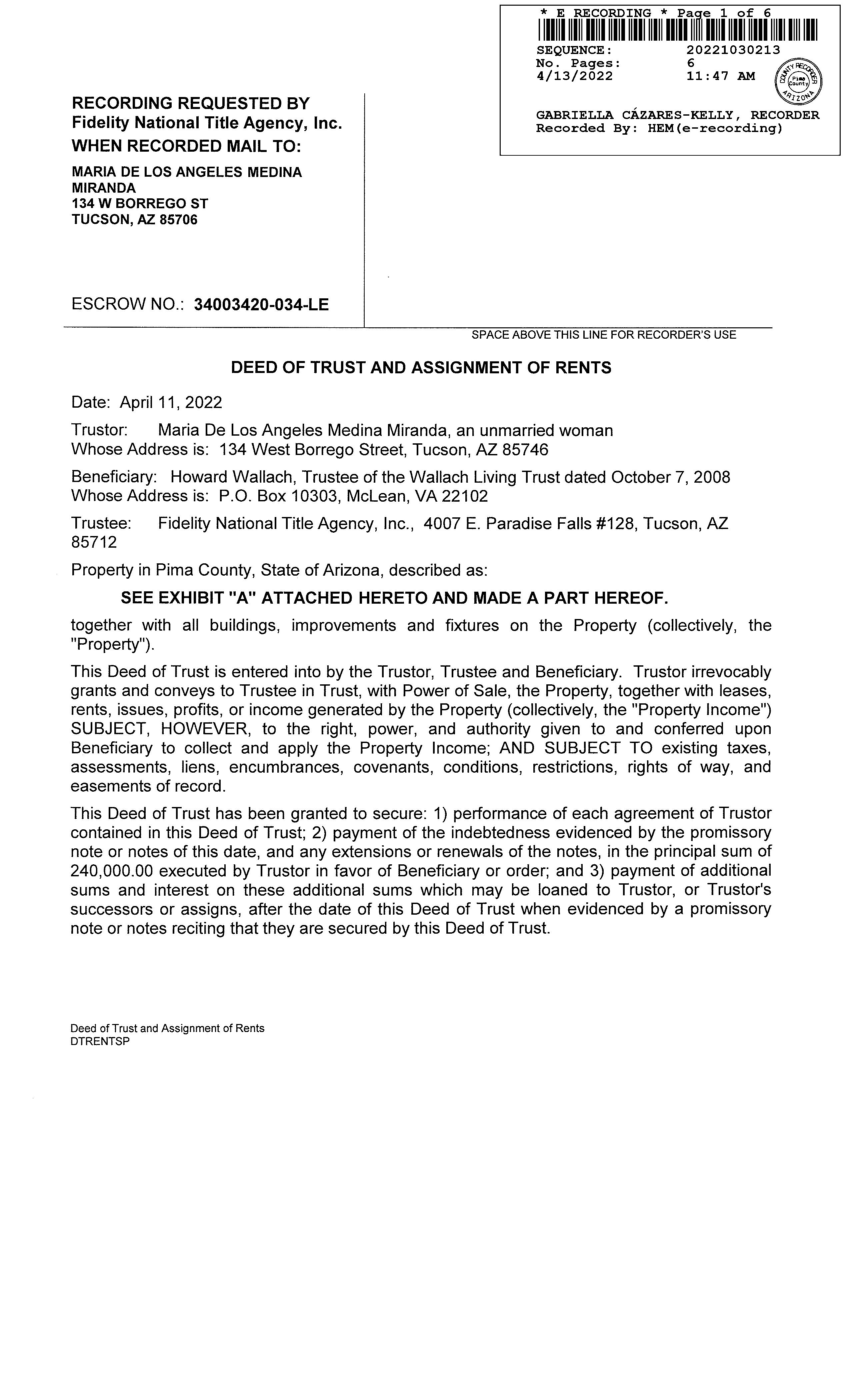 Subject Property : 5529 S Cactus Wren Ave Tucson AZ 85746 Owner Information Owner Name : De Los Angeles Maria Mailing Address : 5529 S Cactus Wren Ave, Tucson AZ 85746-3001 C008 Vesting Codes : Unmarried Woman / / Owner OccupiedIndicator : O Location Information Legal Description : Manzanita Manor No 3 Lot 13 Blk 12 County : Pima, Az Market Area : 111 Census Tract / Block : 43.12 / 3 APN : 137-14-2260 Township-Range- Sect : 15S-13E-4 Subdivision : Manzanita Manor 03 Legal Book/Page : 15-11 Map Reference : 04-15S-13E Legal Lot : 13 School District : Tucson Unified Legal Block : 12 Munic/Township : Tucson Unified Last Market Sale Information Recording/Sale Date : 04/13/2022 / 04/11/2022 1st Mtg Amount/Type : $240,000 / Pp Sale Price : $210,000 1st Mtg Document # : 1030213 Document # : 1030212 Price Per SqFt : $136.54 Deed Type : Warranty Deed Title Company : Fidelity Nat'l Title Agcy Inc Lender : Private Individual Seller Name : Bdb Capital Llc Prior Sale Information Prior Rec/Sale Date : 05/16/2008 / 05/07/2008 Prior Lender : Infinity Fndg Plc Prior Sale Price : $139,000 Prior 1st Mtg Amt/Type : $136,852 / Fha Prior Doc Number : 13308-1306 Prior 1st Mtg Rate/Type : $6.50 Prior Deed Type : Special Warranty Deed Customer Name : Jeremiah Stiffler Customer Company Name : First American Prepared On : 08/29/2022 © 2022 CoreLogic. All rights reserved