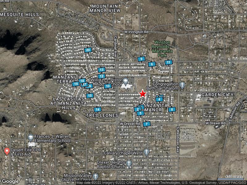 2752 W VERMONT ST Distance 0.04 Miles Owner Name : Molina Leonila H Subdivision : Manzanita Manor 03 Sale Date : 11/01/1971 Recording Date : 12/08/1971 Total Value : $131,469 Sale Price : $24,500 Bed / Bath : / 2 Property Tax : $763.29 Land Use : Sfr Lot Acres : 0.21 Stories : 1 Living Area : 1,512 Yr Blt / Eff Yr Blt : 1962 / APN : 137-14-1750 5557 S CACTUS WREN AVE Distance 0.05 Miles Owner Name : Gamez Phillip Subdivision : Manzanita Manor 03 Sale Date : 11/00/1995 Recording Date : 12/08/1995 Total Value : $144,688 Sale Price : $78,000 Bed / Bath : / 2 Property Tax : $1,567.91 Land Use : Sfr Lot Acres : 0.20 Stories : 1 Living Area : 1,456 Yr Blt / Eff Yr Blt : 1964 / APN : 137-14-2230 2751 W CANADA ST Distance 0.05 Miles Owner Name : Boerner Shirley Ann Subdivision : Manzanita Manor 03 Sale Date : 11/01/1972 Recording Date : 11/27/1972 Total Value : $137,926 Sale Price : $27,000 Bed / Bath : / 2 Property Tax : $1,615.52 Land Use : Sfr Lot Acres : 0.22 Stories : 1 Living Area : 1,622 Yr Blt / Eff Yr Blt : 1966 / APN : 137-14-1640 5553 S HILDRETH AVE Distance 0.06 Miles Owner Name : Valenzuela Jesus Iii Subdivision : Manzanita Manor Sale Date : 04/07/2022 Recording Date : 04/08/2022 Total Value : $146,726 Sale Price : $270,000 Bed / Bath : / 1 Property Tax : $1,857.22 Land Use : Sfr Lot Acres : 0.26 Stories : 1 Living Area : 1,209 Yr Blt / Eff Yr Blt : 1960 / APN : 137-14-0790 Customer Name : Jeremiah Stiffler Customer Company Name : First American Prepared On : 08/29/2022 © 2022 CoreLogic. All rights reserved