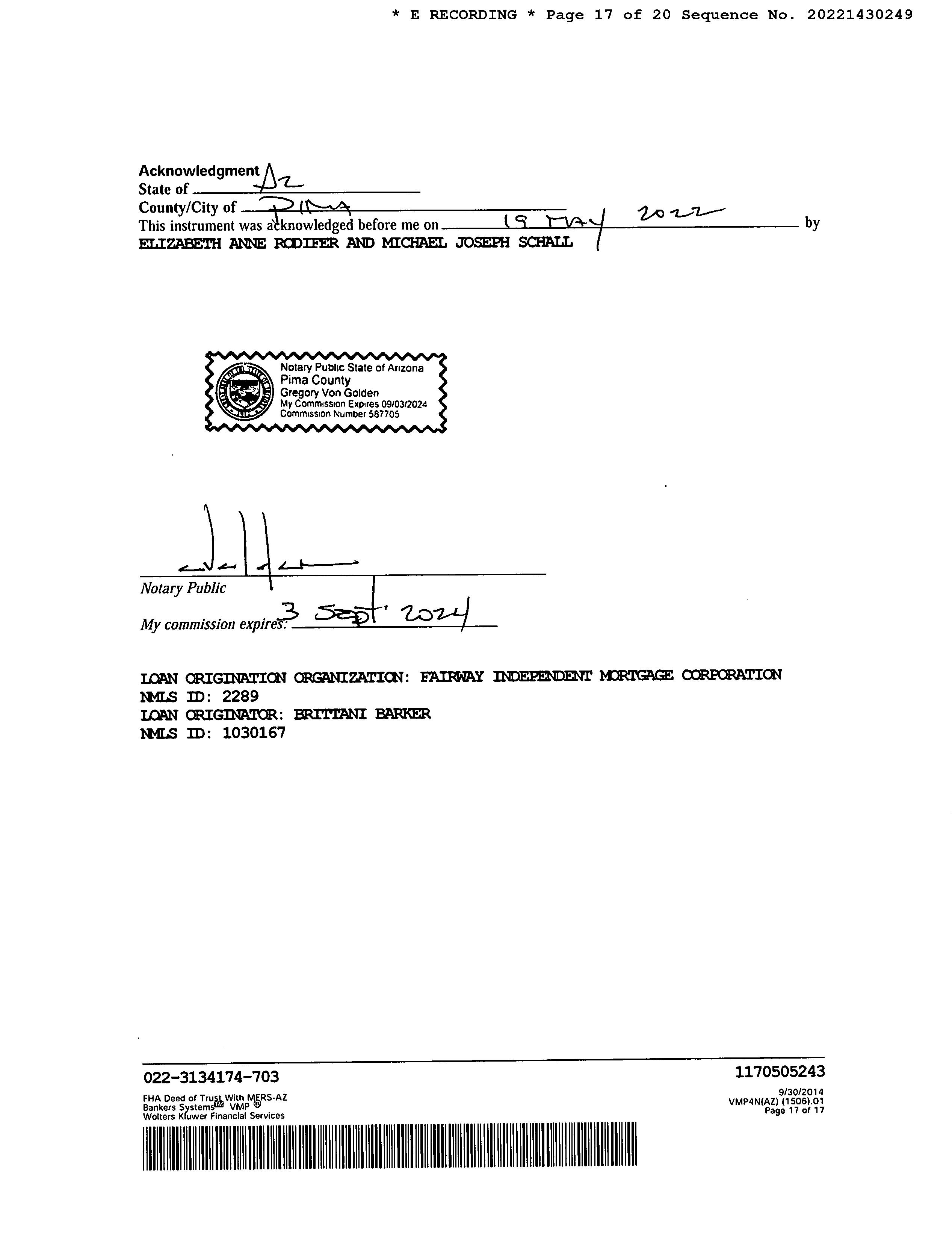 Owner Name : Rodifer Elizabeth Anne / Schall Michael Joseph