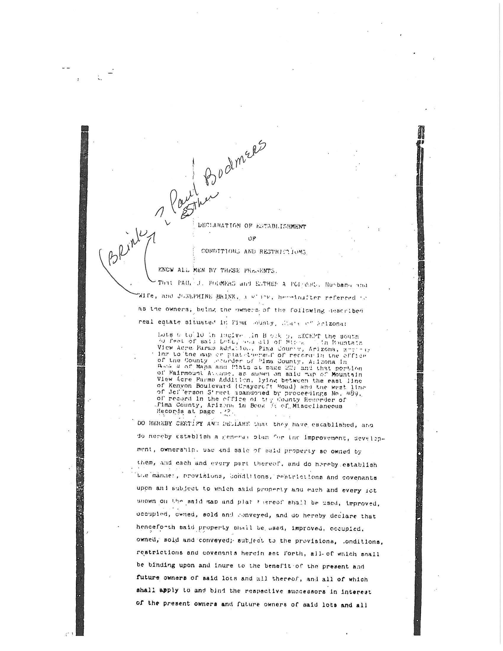 ConditionsCovenants,&Restrictions Thank you for the opportunity to be of service. Restrictions indicating a preference, limitation or discrimination based on race, color, religion, sex, handicap, familial status, or national origin are hereby deleted to the extent such restrictions violate 42 USC 3604(c). This information is furnished without fee and without benefit of a complete title search. No liability is assumed by First American Title or Title Security. If it is desired that liability be assumed, you may apply for a policy of title insurance with First American Title Insurance Company.