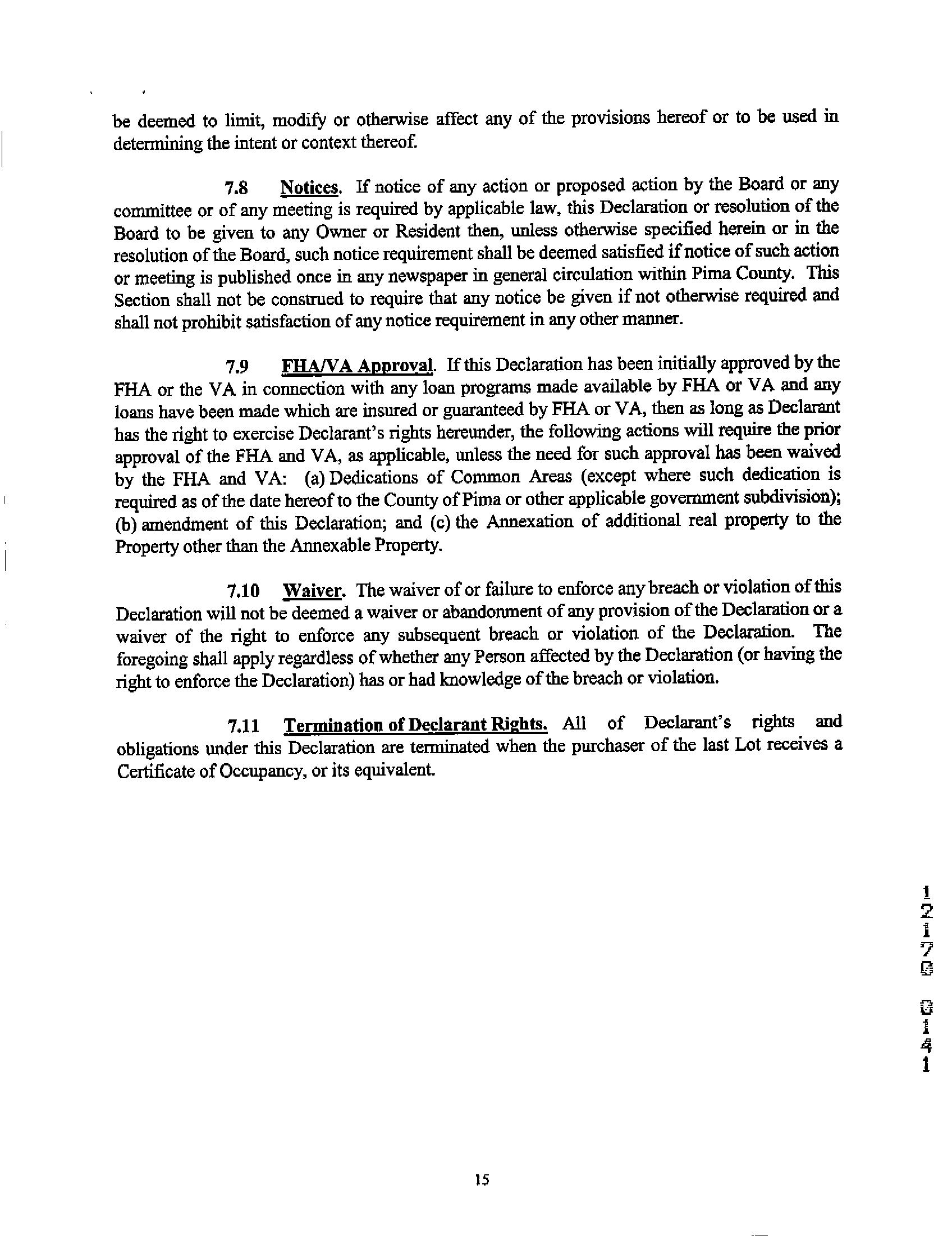 ©2021 First American Financial Corporation and/or its affiliates. All rights reserved. NYSE: FAF 05252610821 COVENANTS, CONDITIONS & RESTRICTIONS PREPARED FOR : First American Title Insurance Company, and the operating divisions thereof, make no express or implied warranty respecting the information presented and assume no responsibility for errors or omissions. First American, the eagle logo, First American Title, and firstam.com are registered trademarks or trademarks of First American Financial Corporation and/or its affiliates. 5575 N. Campbell Avenue Tucson, AZ