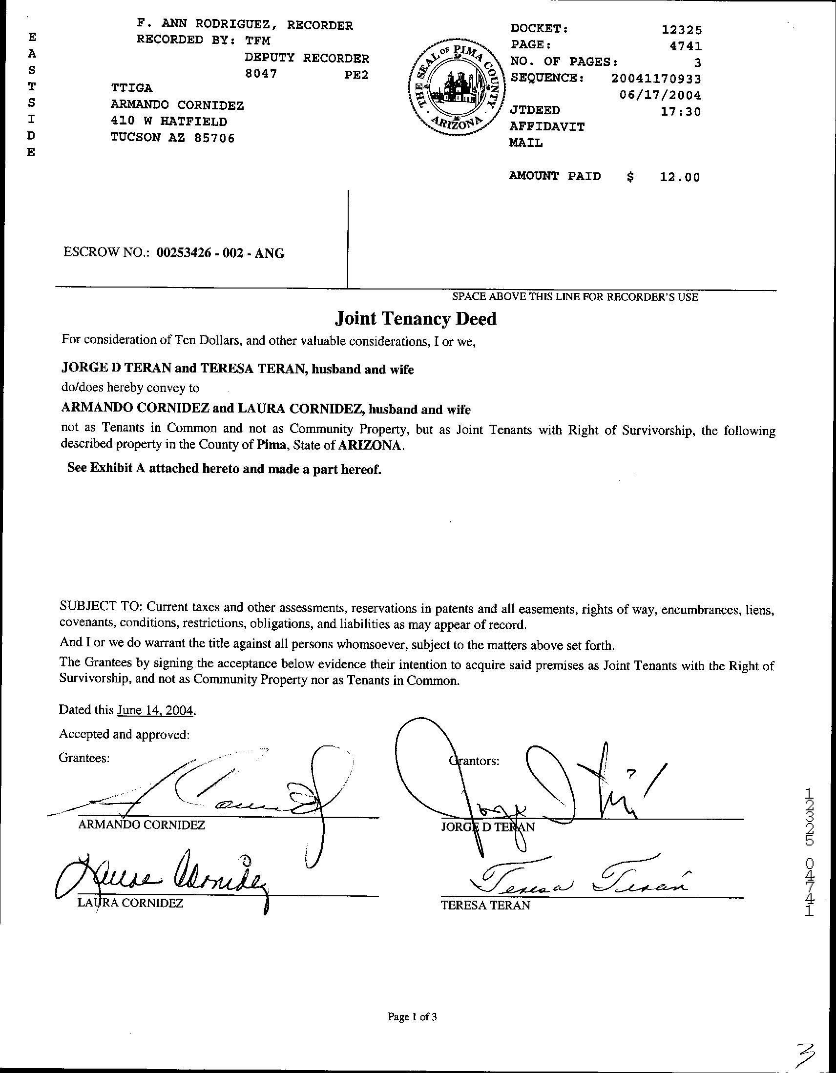 OWNER: CORNIDEZ ARMANDO & LAURA JT/RS