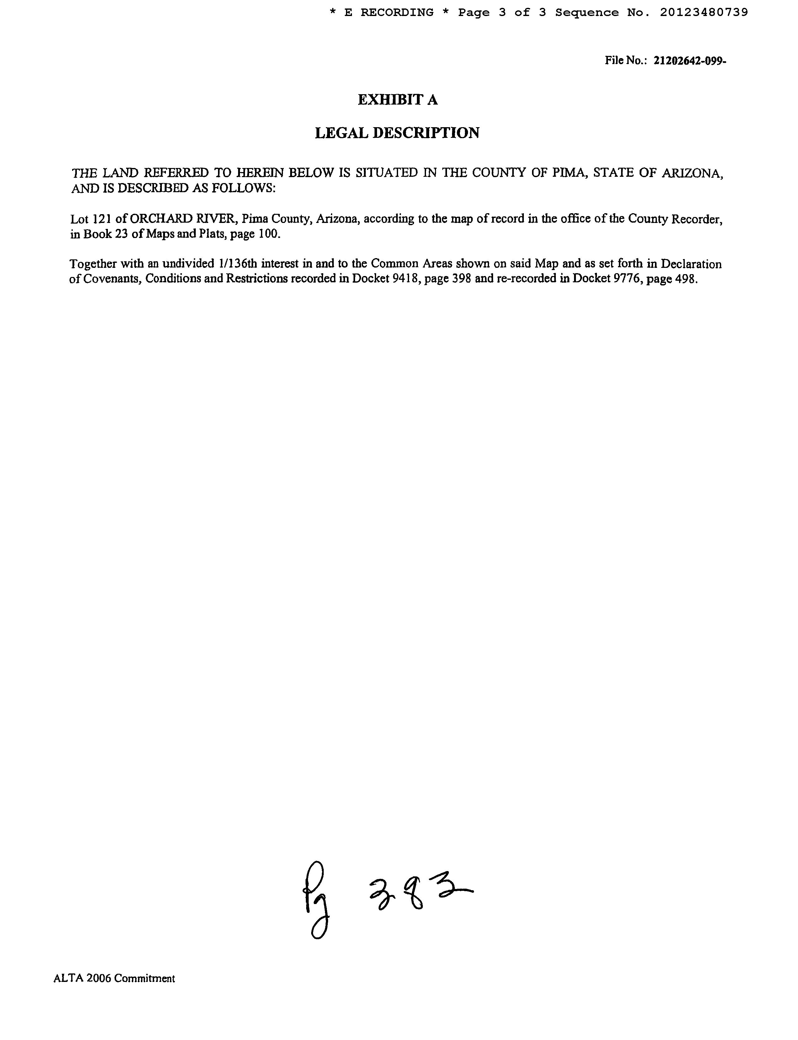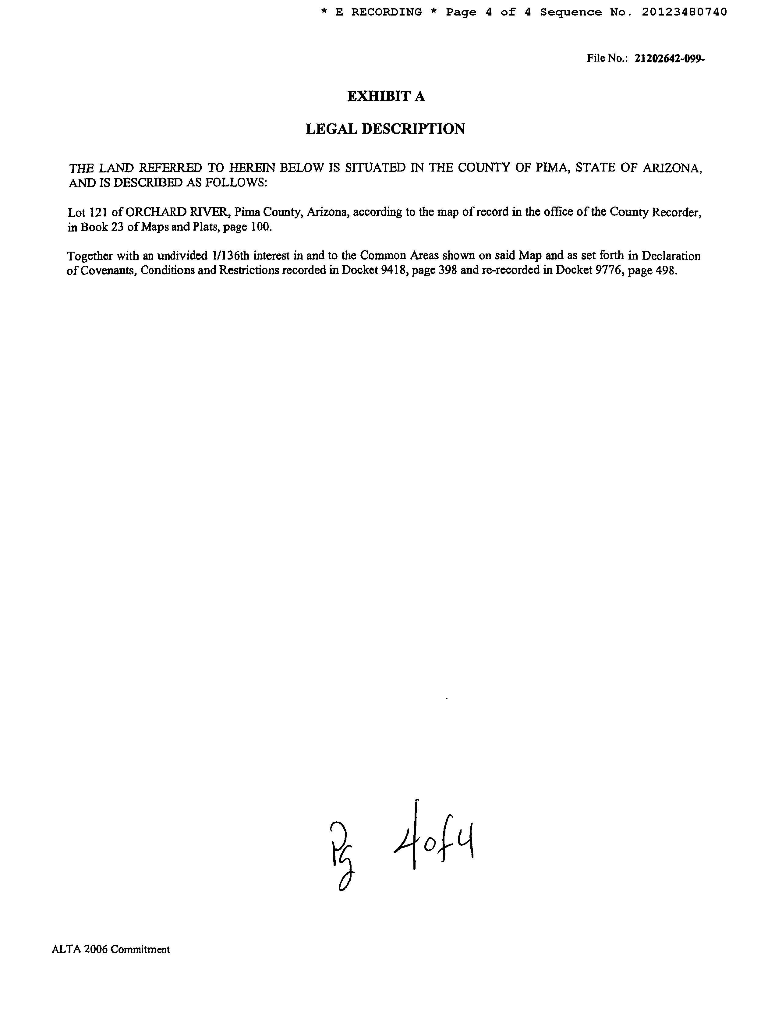 Legal Description : Orchard River Lot 121 & Und Int In Common Area