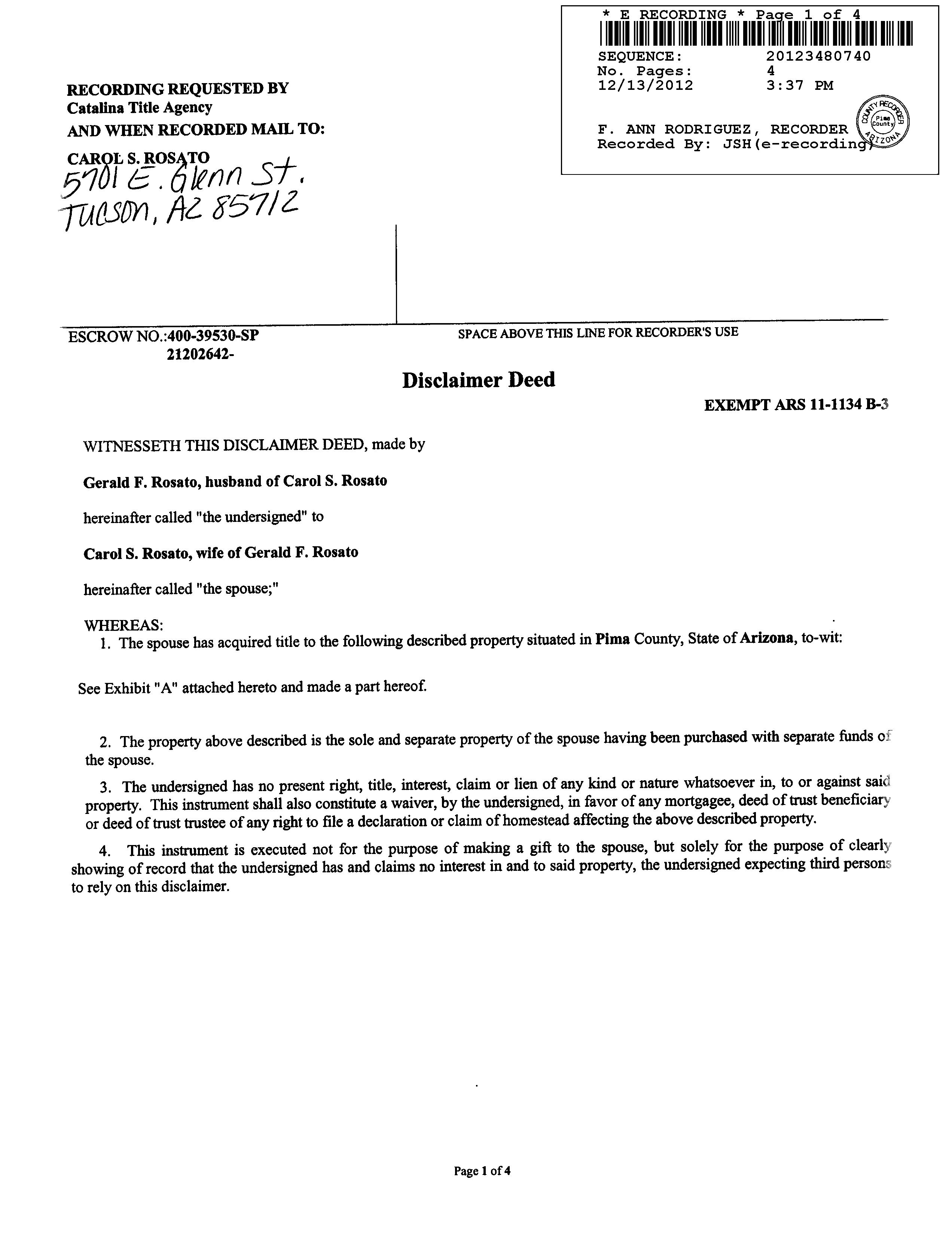 AFFIDAVIT 2012 3480739 12/13/2012