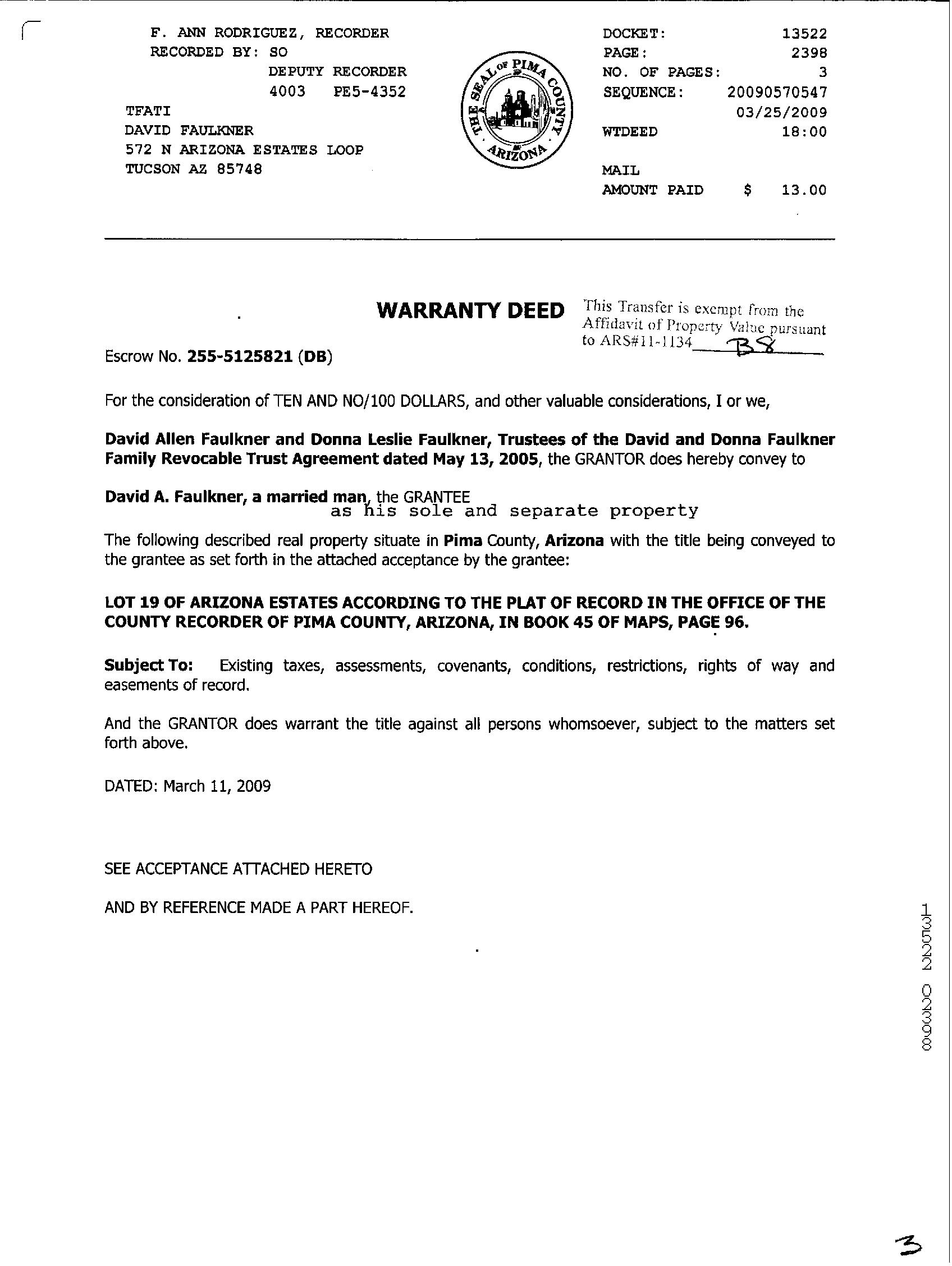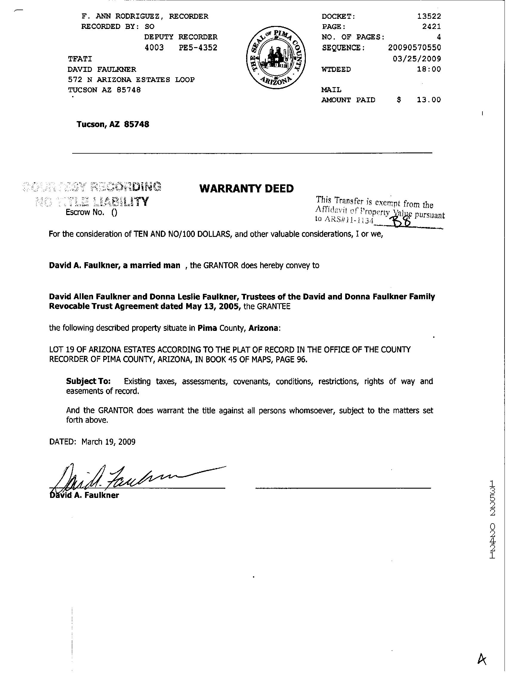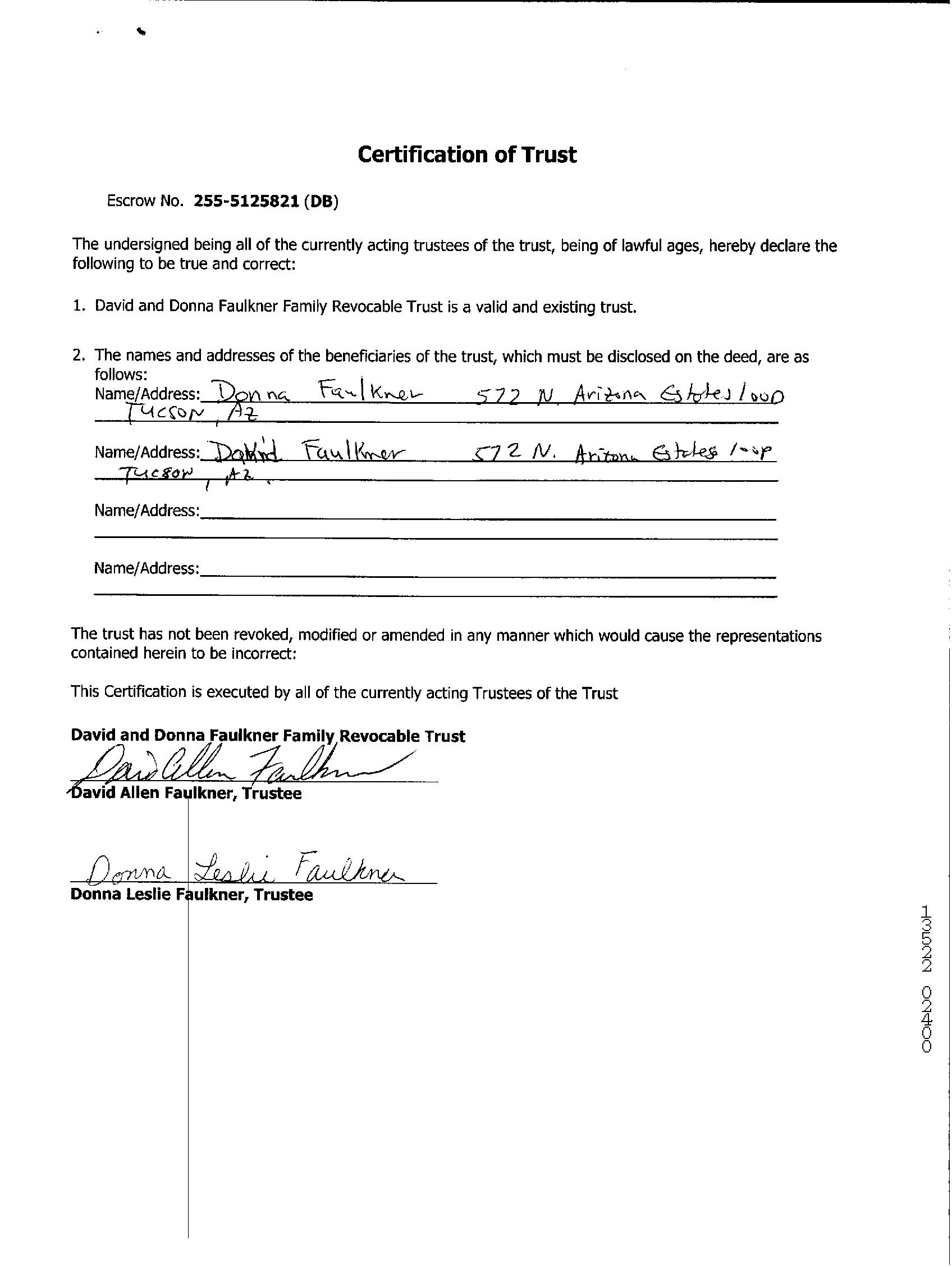 Owner Name : Faulkner David Allen & Donna / Leslie