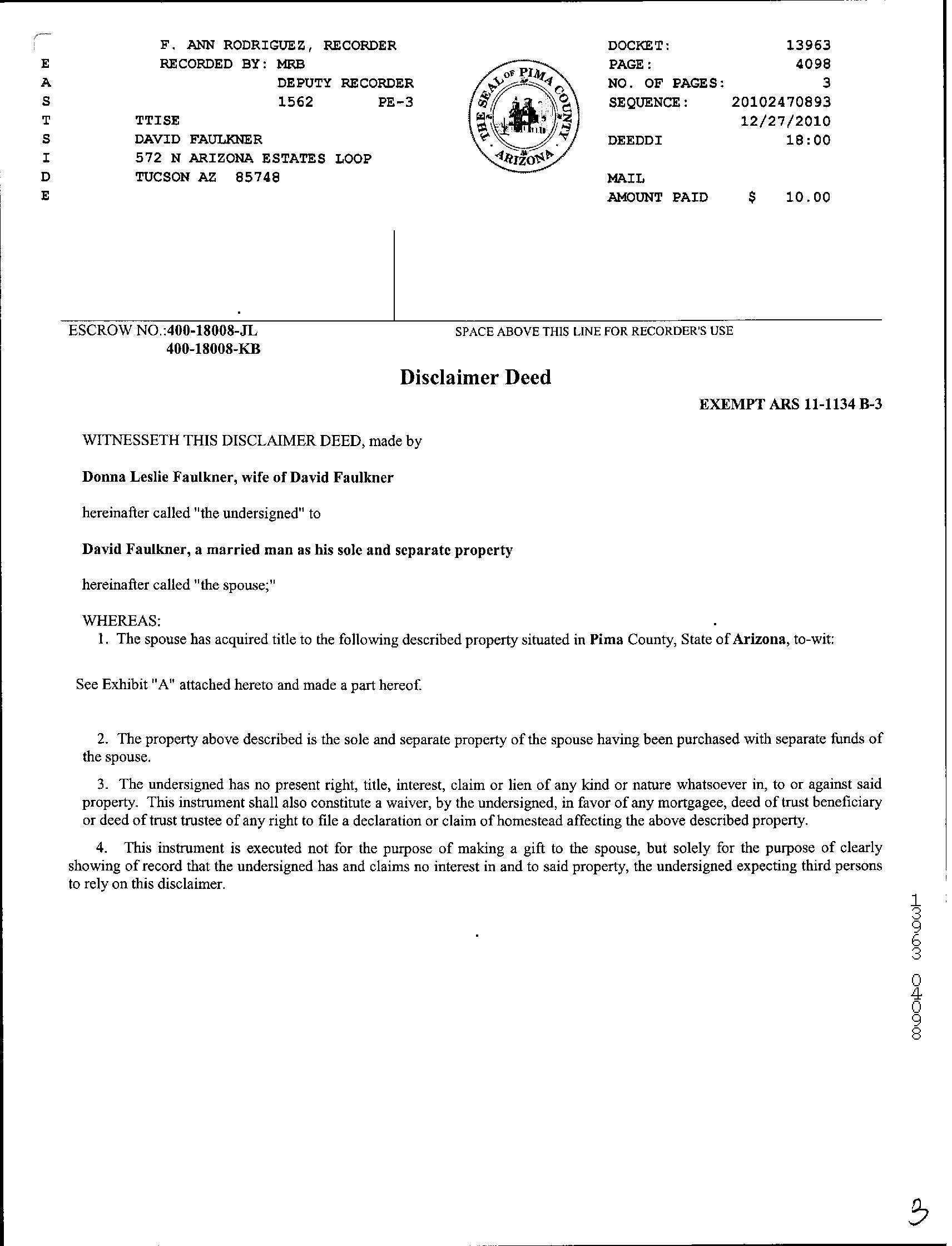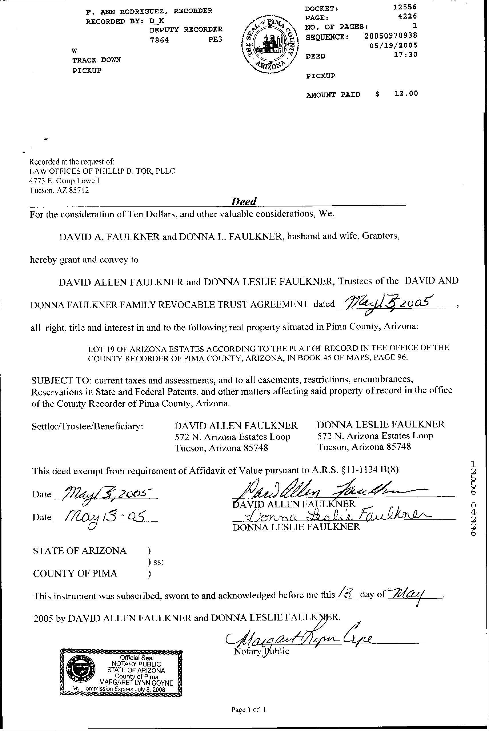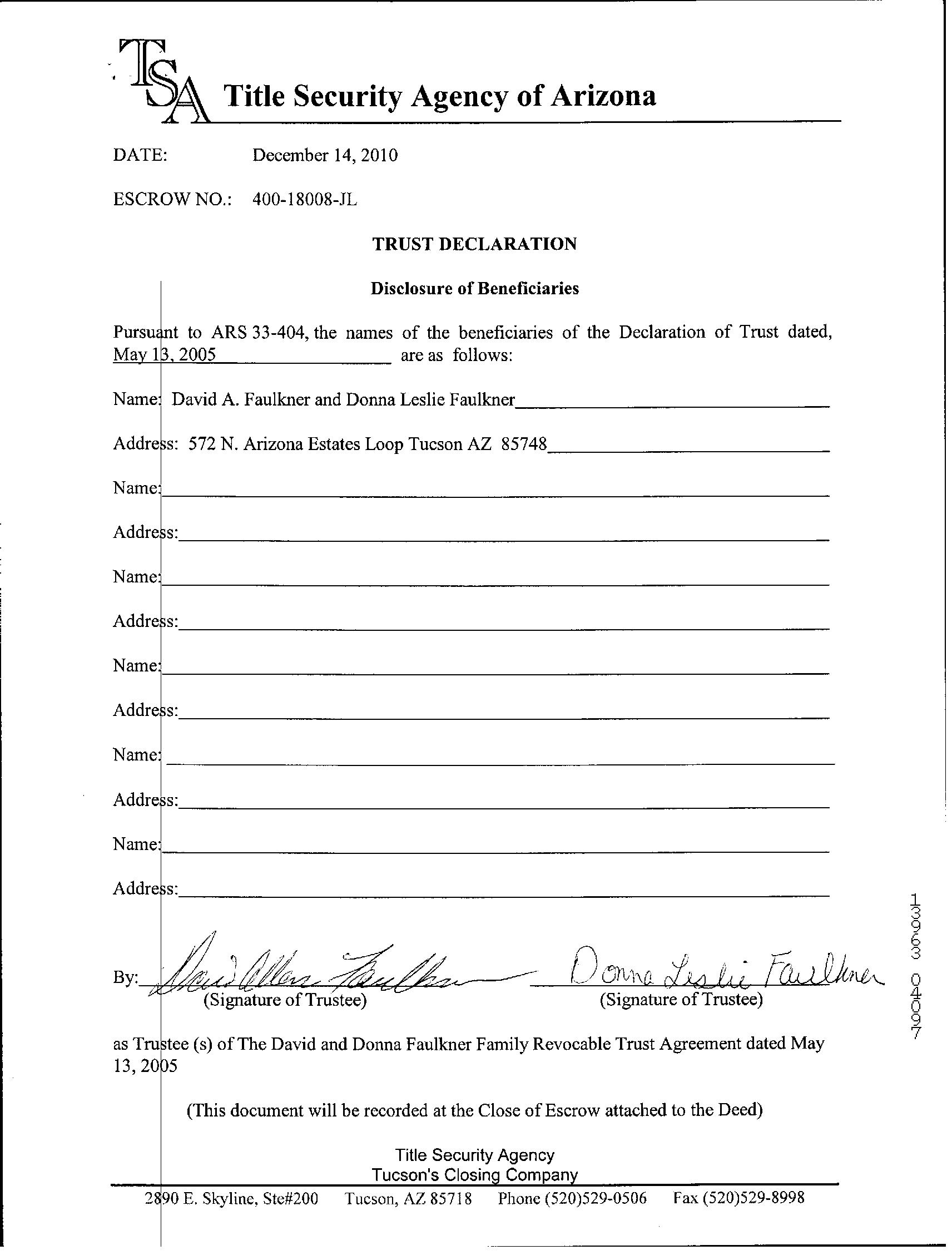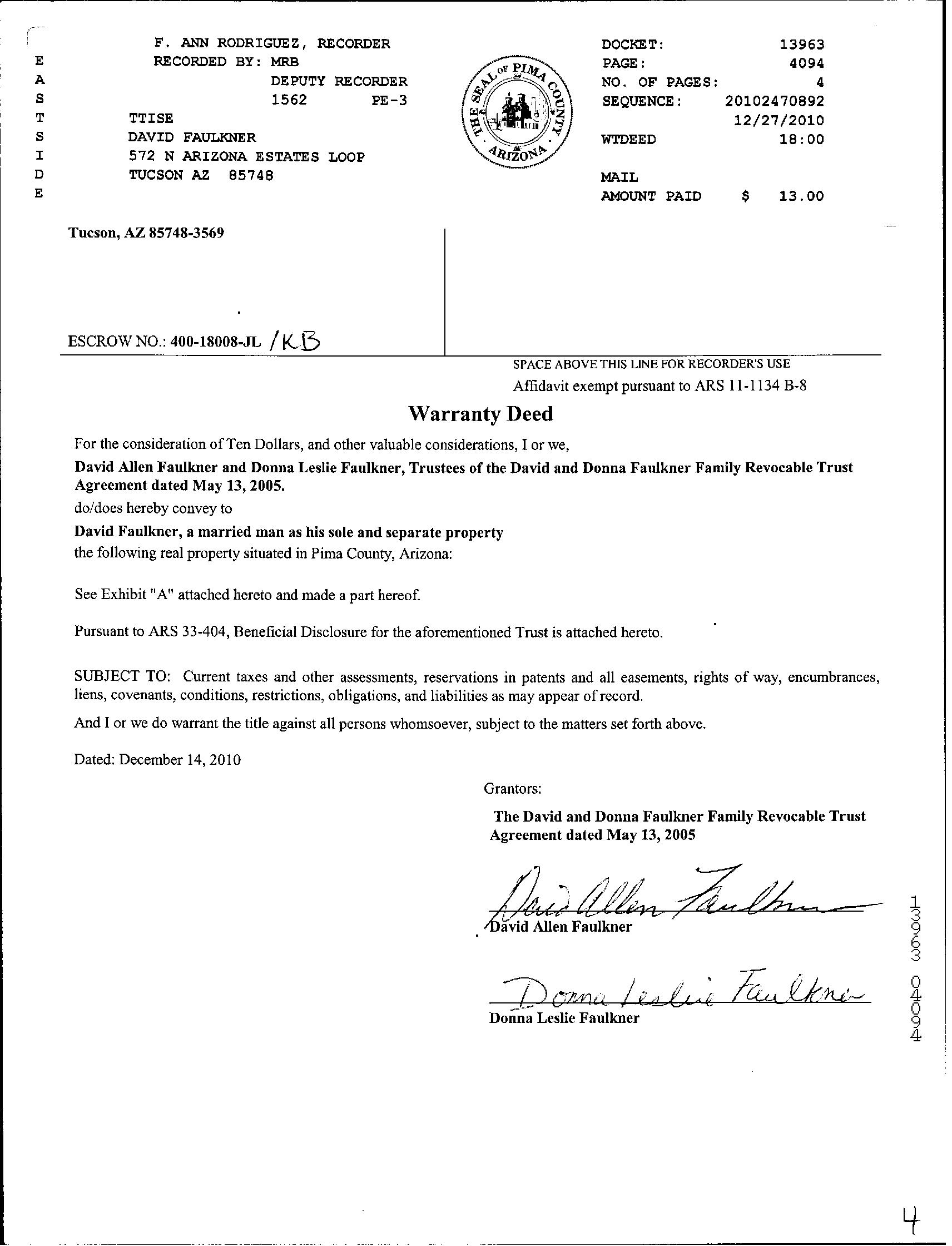 Owner Name : Faulkner David Allen & Donna / Leslie