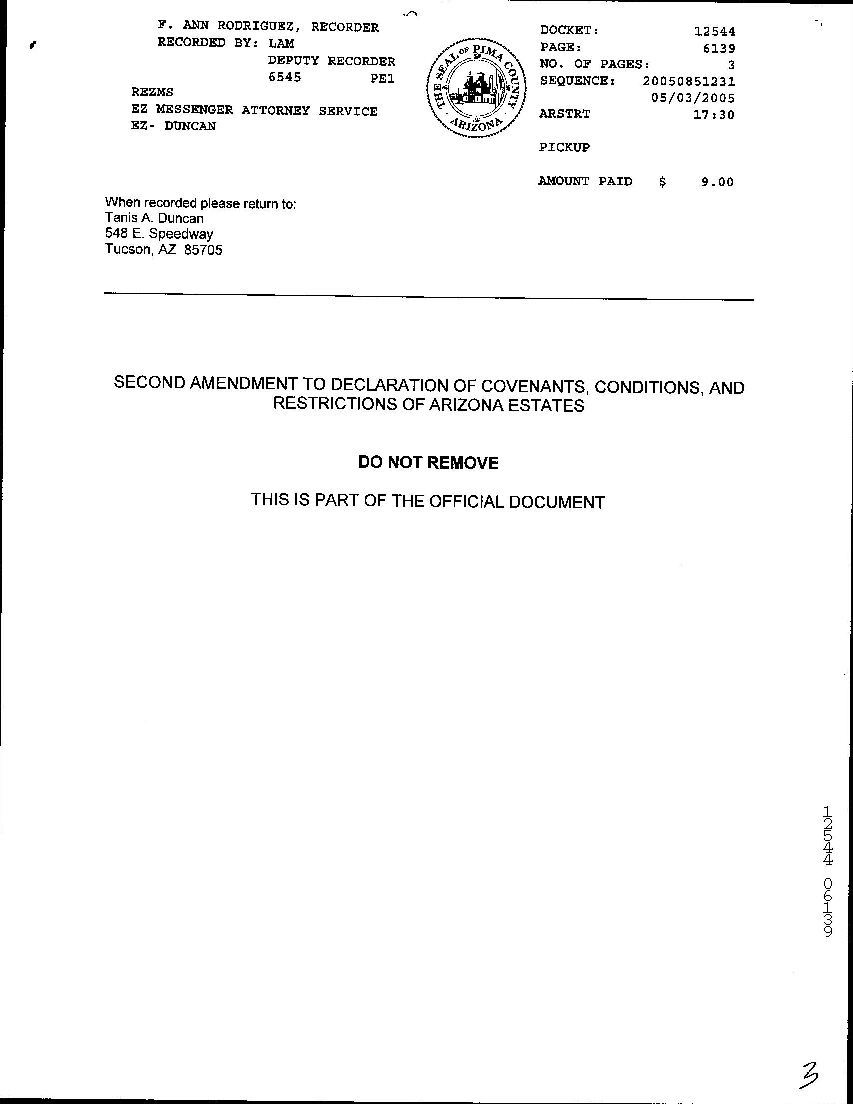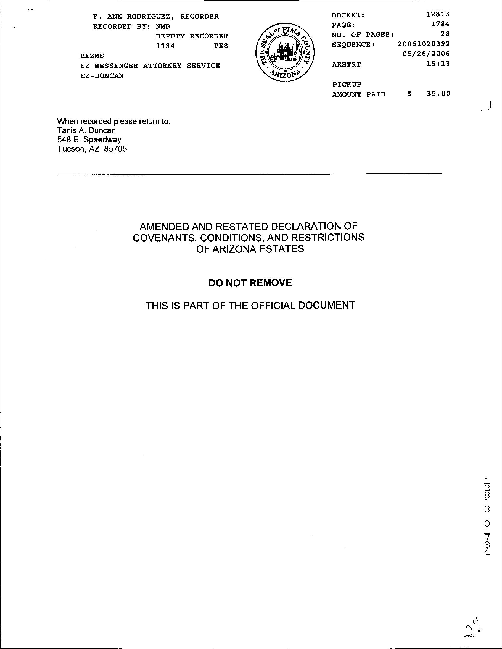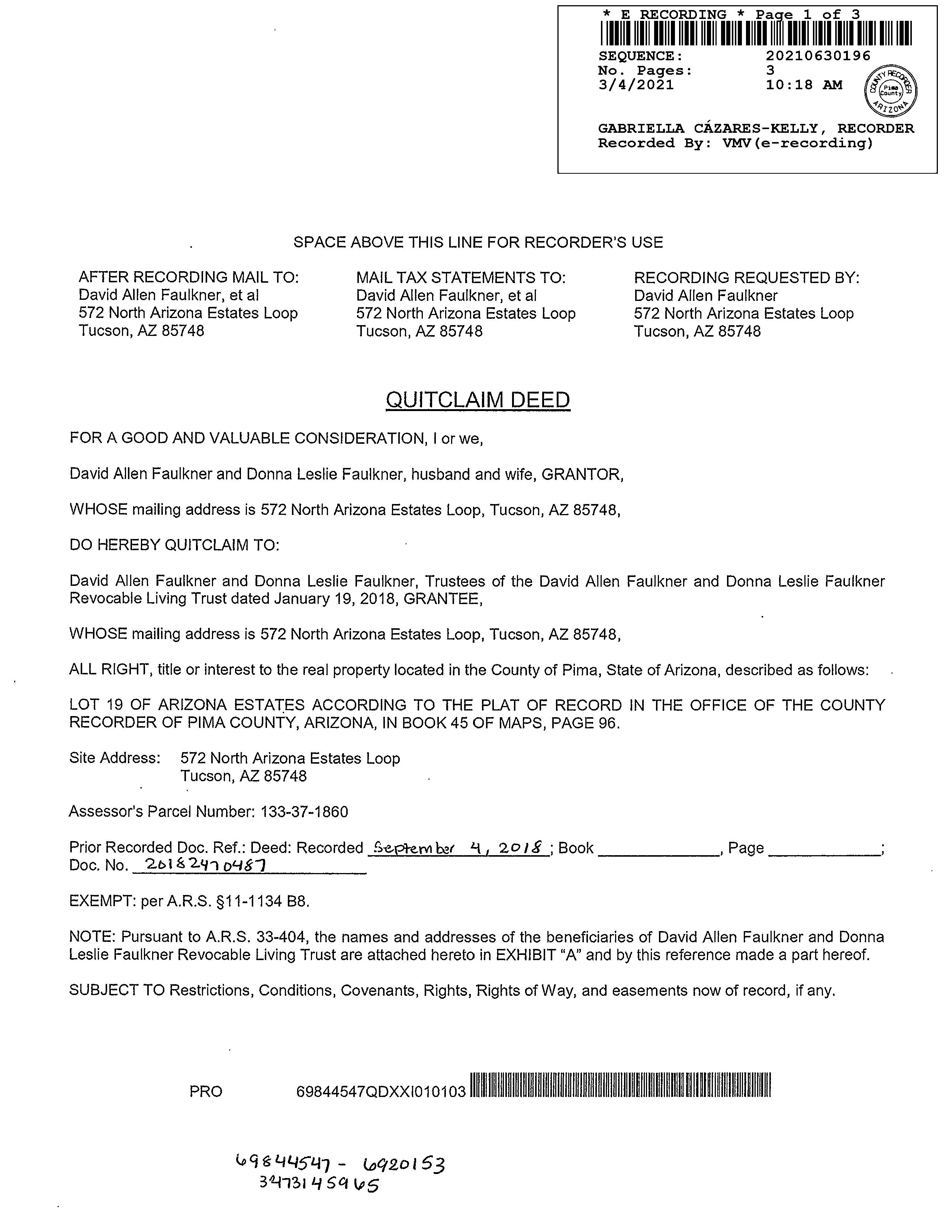 Mailing Address : 572 N Arizona Estates Loop, Tucson AZ 85748-3569 C001