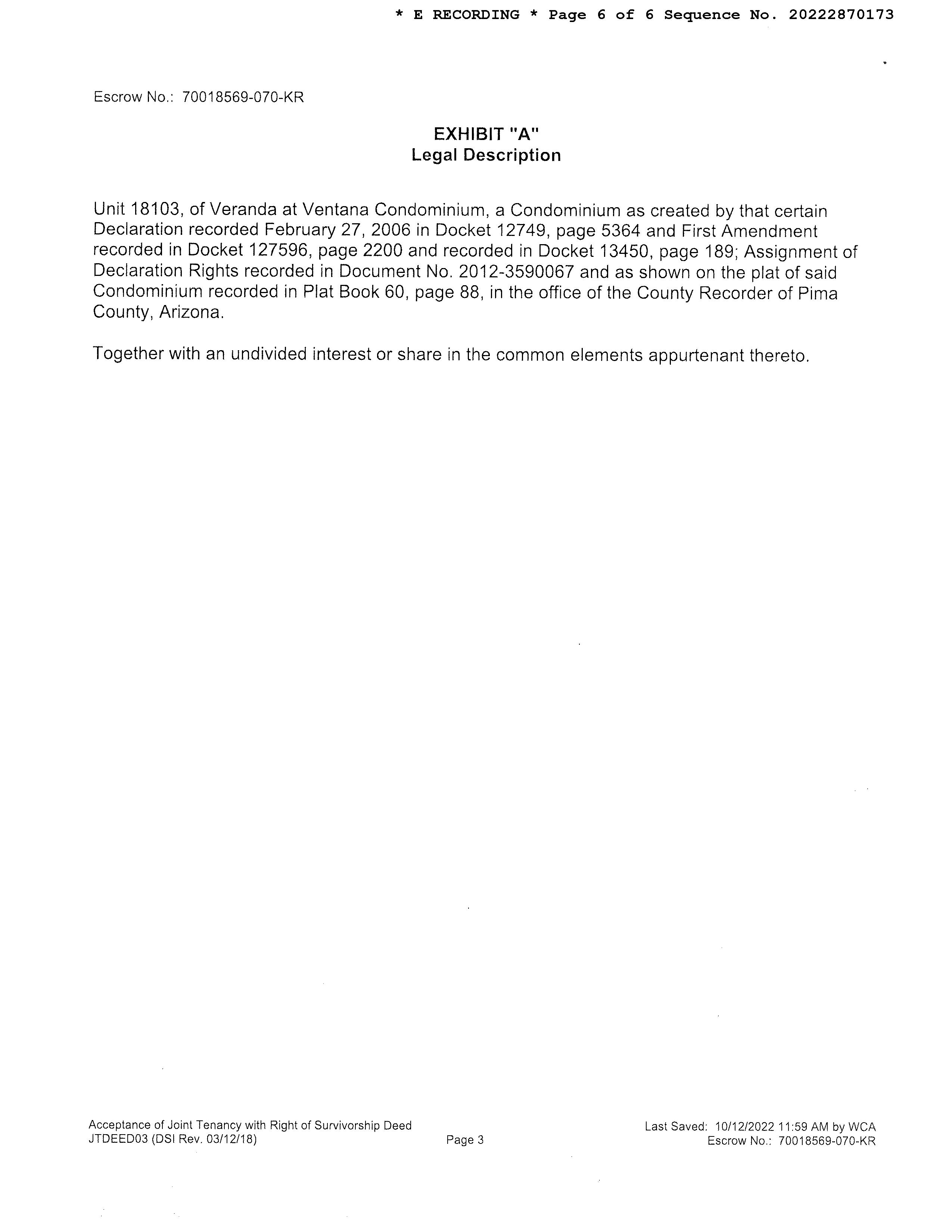 Subject Property: 5751 N Kolb Rd # 18 Tucson Az 85750 Owner Name: Oppeboen Mark A / APN / Alternate APN: 114-65-1630 / Deed Type: Warranty Deed Land Use: Condominium Subdivision / Tract: Veranda/ventana Condo / Lot Size: Year Built / Eff: 1996 / Rec. Date / Price: 02/16/2024 / $250,000 Living Area: 944 # of units: Document #: 470703 Bedrooms: Pool: Total Tax Value: $157,890 Bath(F/H): / #1 5751 N Kolb Rd # 6 Tucson Az 85750 Owner Name: Berso Trust / APN / Alternate APN: 114-65-0490 / Deed Type: Warranty Deed Land Use: Condominium Subdivision / Tract: Veranda/ventana Condo / Lot Size: 1,054 Year Built / Eff: 1996 / Rec. Date / Price: 08/18/2023 / $205,000 Living Area: 944 # of units: Document #: 2300038 Bedrooms: Pool: Total Tax Value: $157,890 Bath(F/H): / #2 5751 N Kolb Rd # 20 Tucson Az 85750 Owner Name: Matz