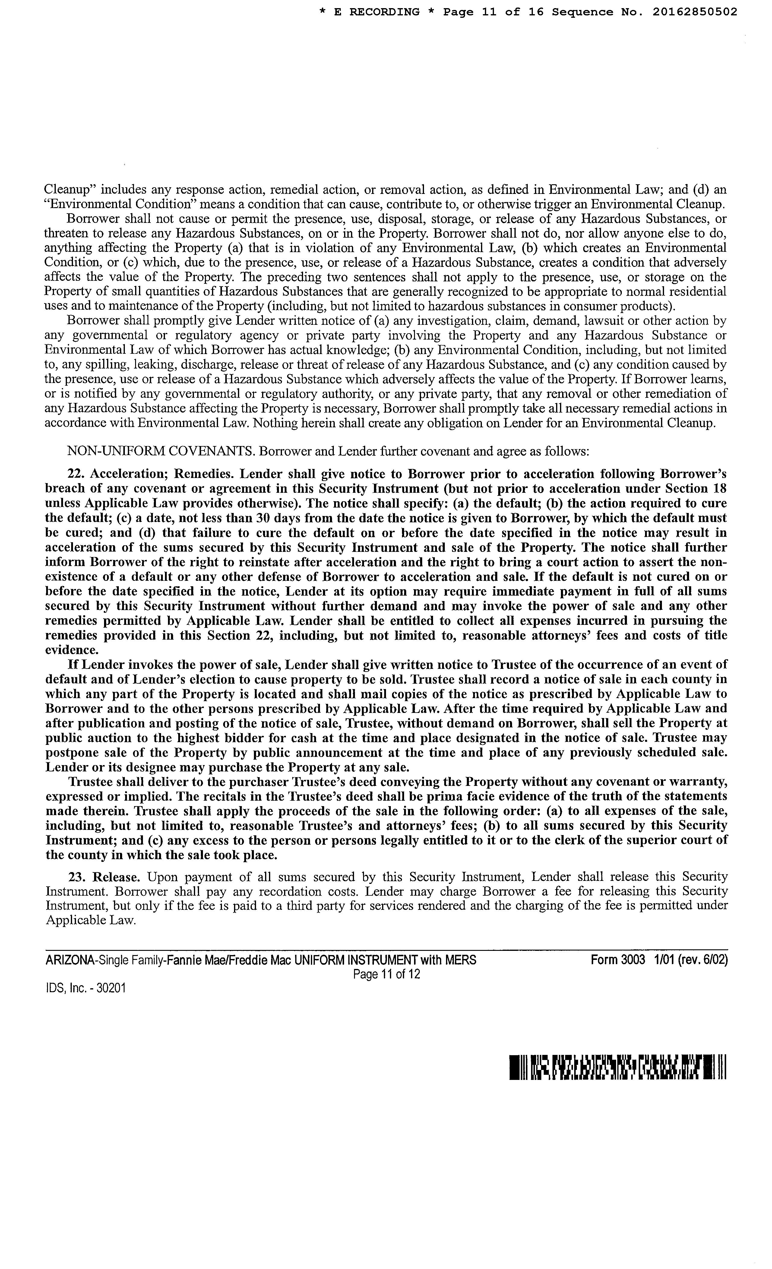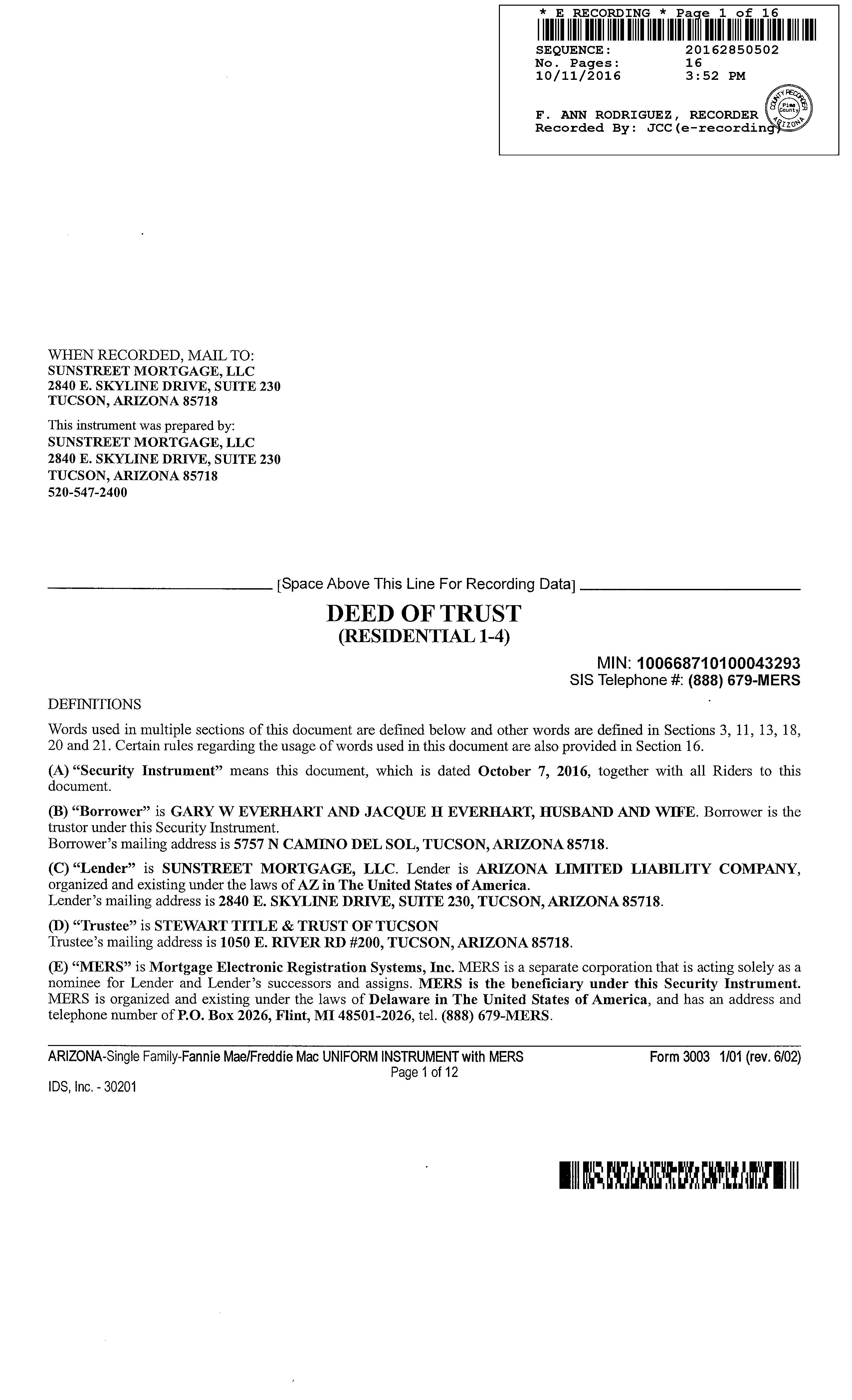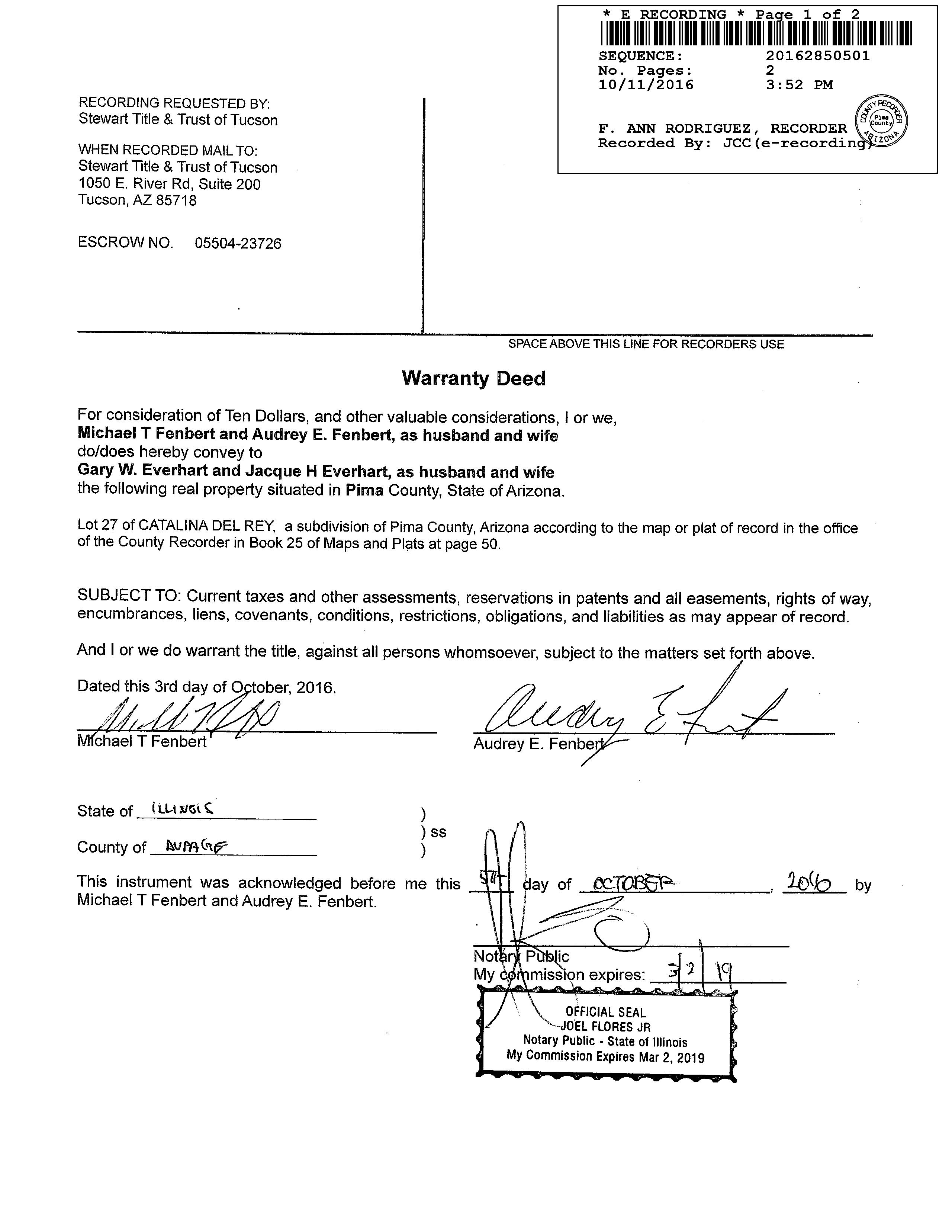 PIMA, AZ Document:DED WAR 2016.285.0501 Page:1 of 2 Printed on:3/20/2023 10:42 AM Branch :FC0 User :JSTI