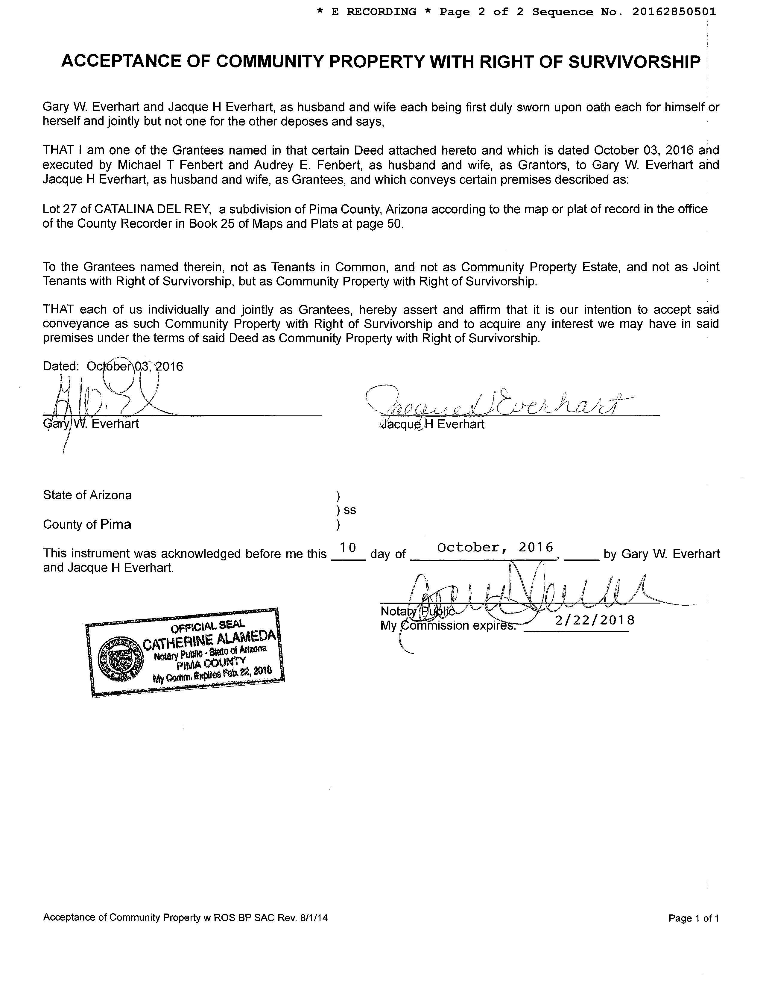 PIMA, AZ Document:DED WAR 2016.285.0501 Page:2 of 2 Printed on:3/20/2023 10:42 AM Branch :FC0 User :JSTI
