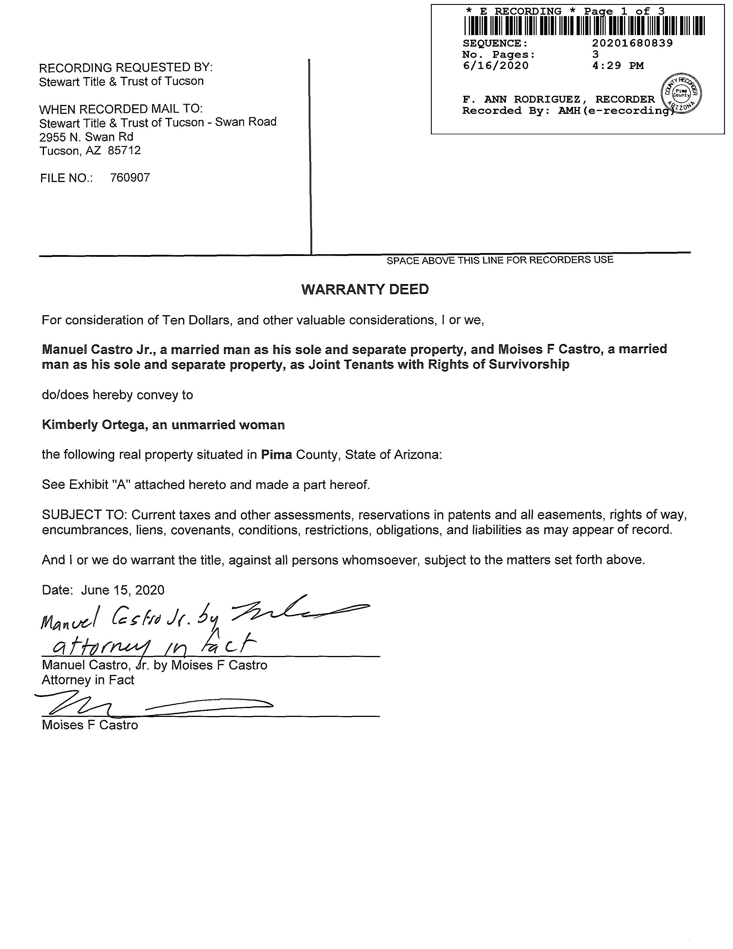 Title Company : Stewart Title & Tr/tucson