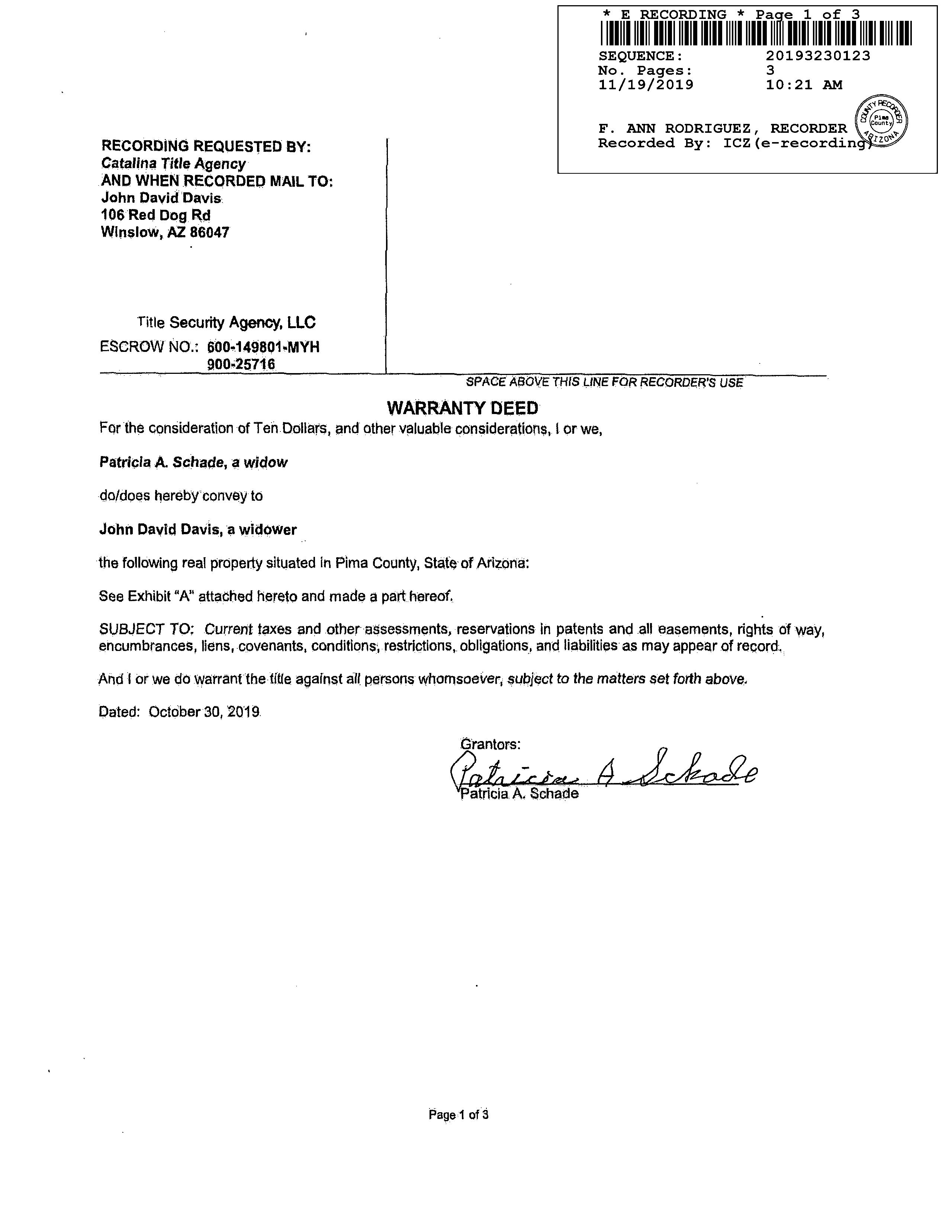 Recording/Sale Date : 11/19/2019 / 10/30/2019 Document # : 3230123