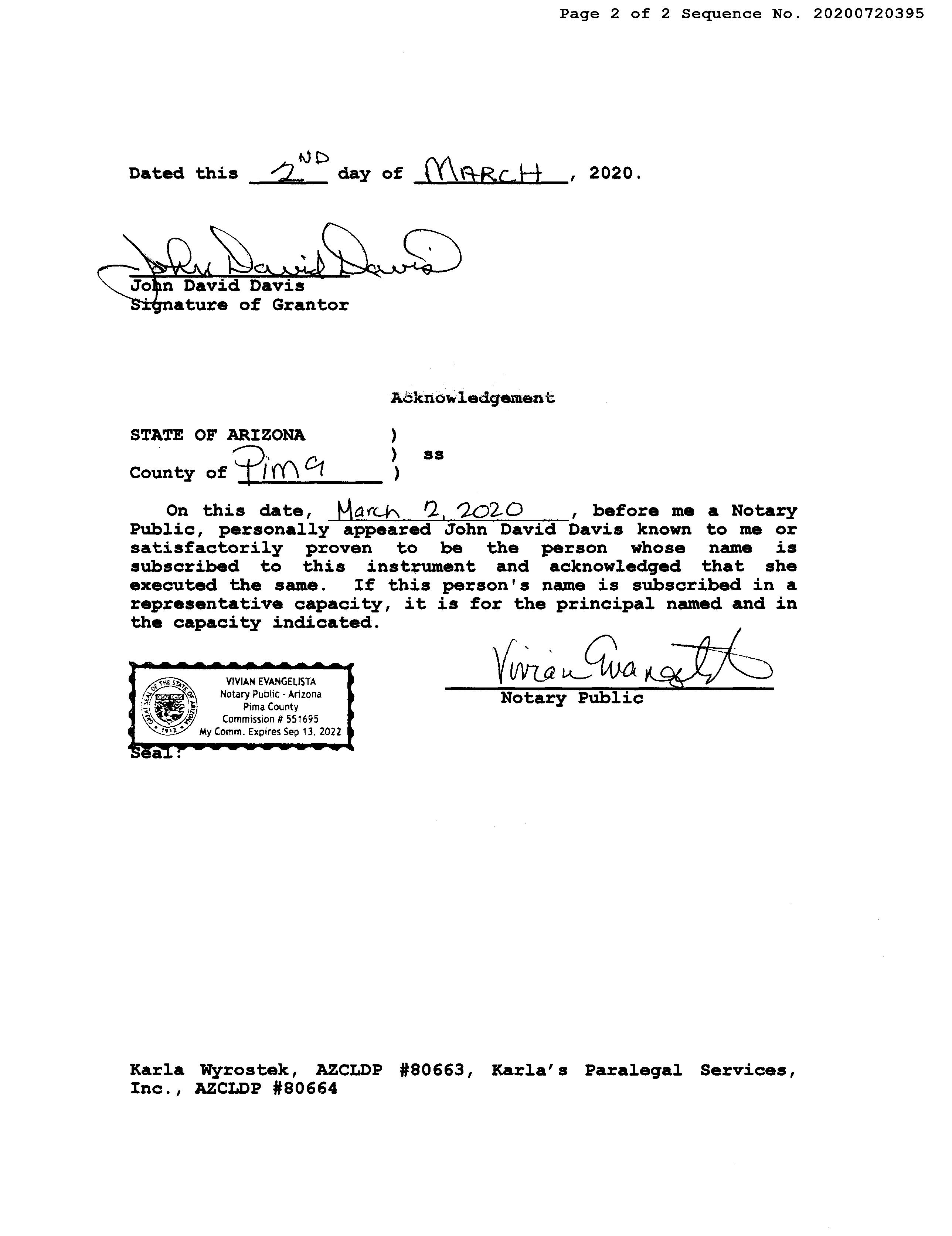 Owner Name : Davis John David Mailing Address : 5772 W Bar X St, Tucson AZ 85713-6409 C006