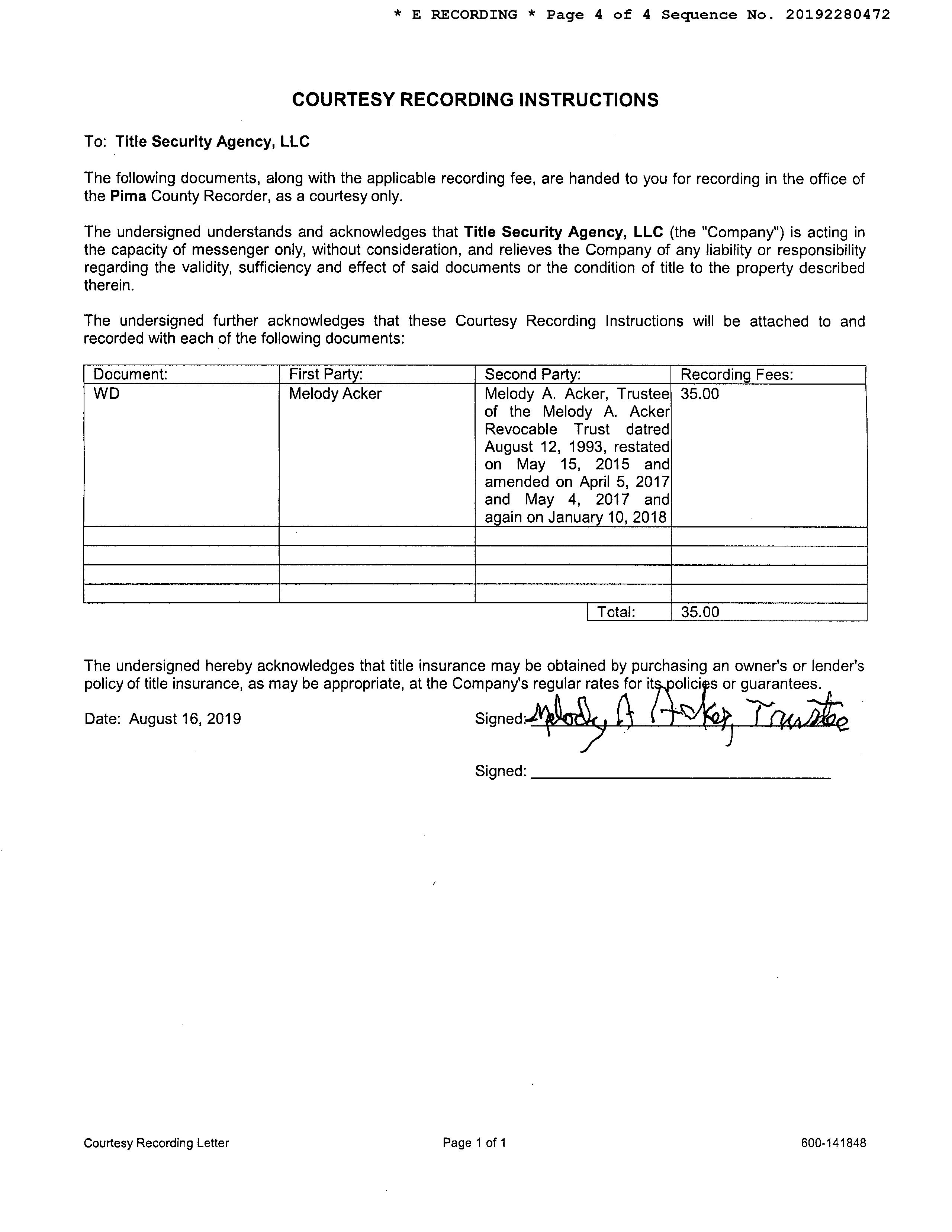 Last Market Sale Information Recording/Sale Date : 08/09/2019 /