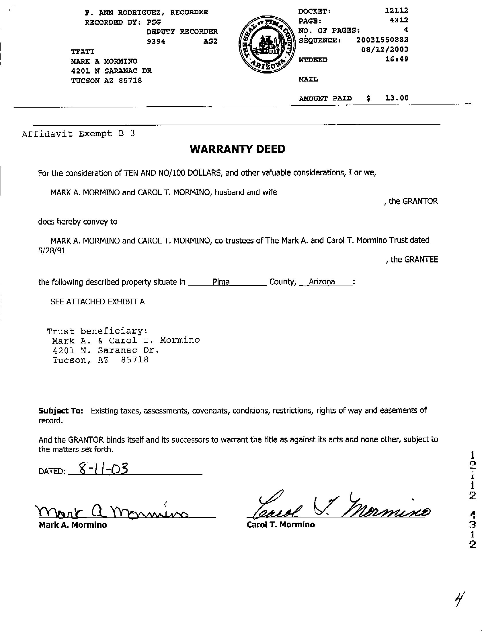 Recording/Sale Date : 08/12/2003 / 07/02/2003