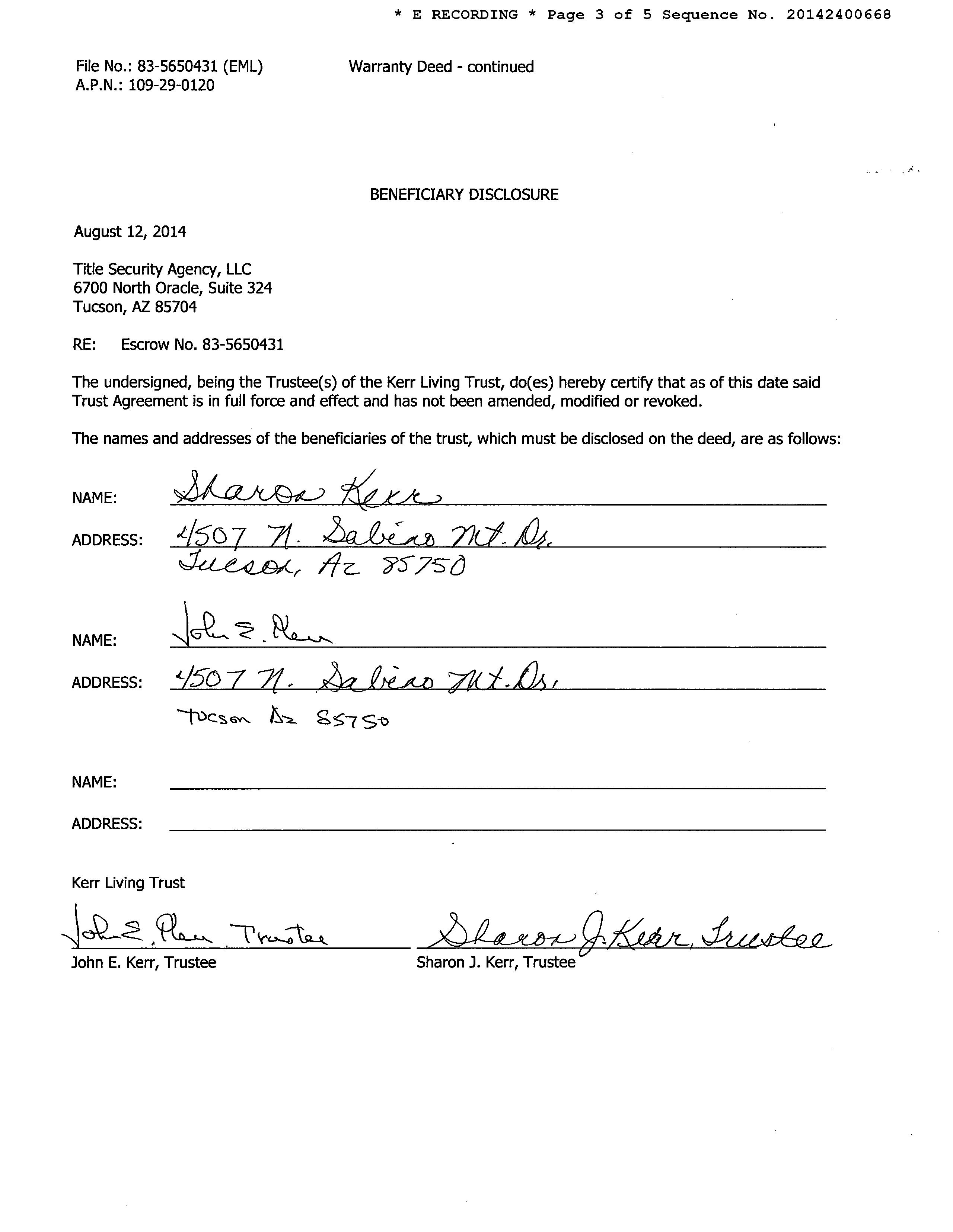 Mailing Address : 5859 E Placita Alta Reposa, Tucson AZ 85750-1096 C057