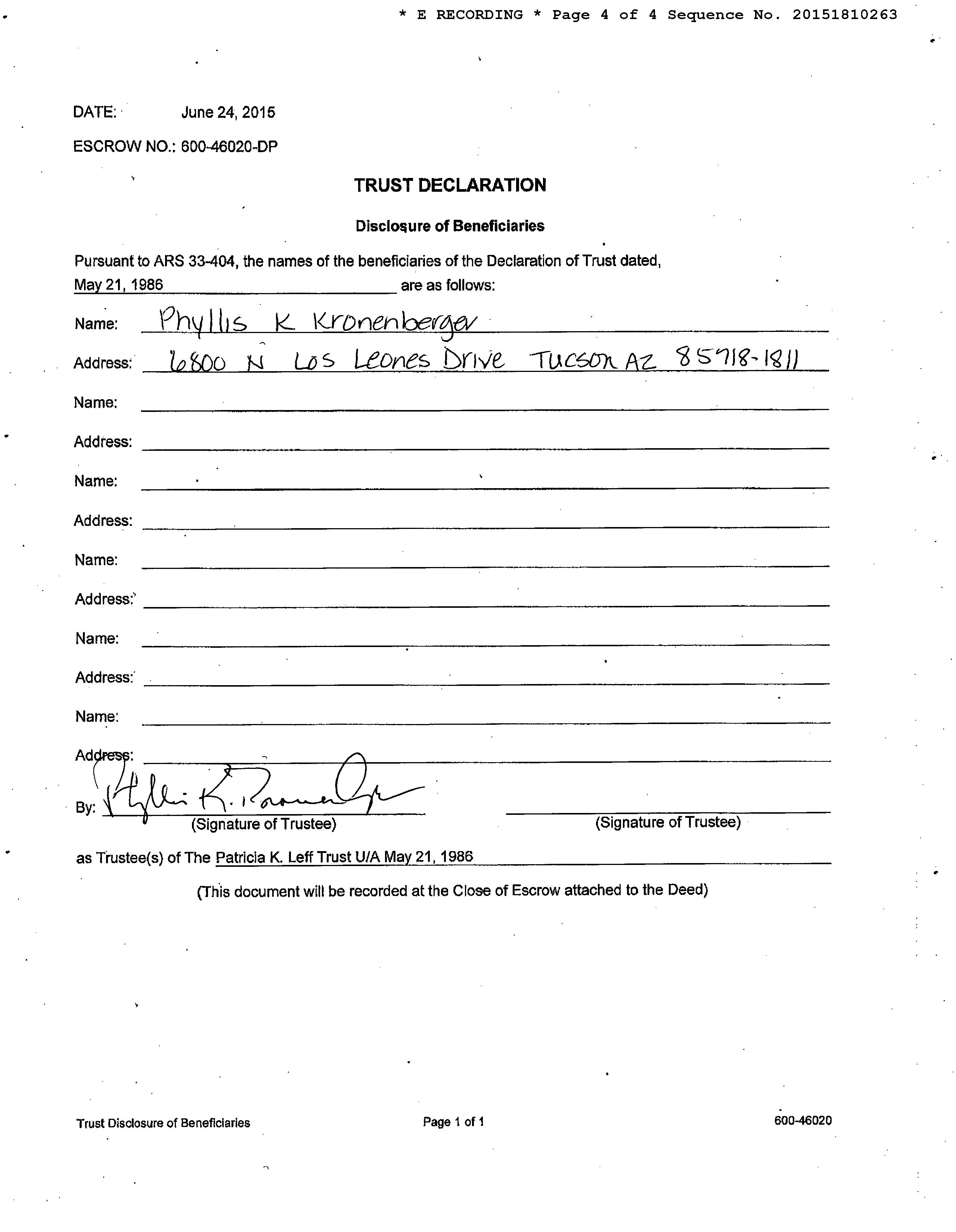 #9 7300 E Calle Alba Serena Tucson Az 85750 Owner Name: Sgcc Llc /