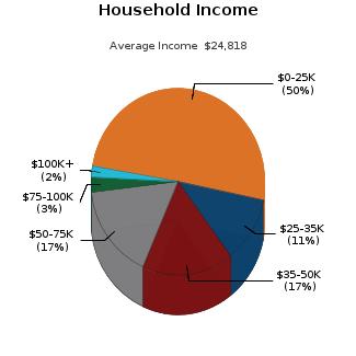 Census Tract / block: 37.02 / 4     Year: 2018 Household Population Population by Age Count: 6,856 0 - 11 Estimate Current Year: 6,966 12 - 17 Estimate in 5 Years: 7,422 18 - 24 17.74% Growth Last 5 Years: -2.01% 25 - 64 45.96% Growth Last 10 Years: -259.94% 65 - 74 2.8% 75+ Household Size Household Income Current Year: 2,152 0 - $25,000 50.37% Average Current Year: 3.15 $25,000 - $35,000 11.43% Estimate in 5 Years: 2,341 $35,000 - $50,000 17.1% Growth Last 5 Years: 5.86% $50,000 - $75,000 16.59% Growth Last 10 Years: -12.98% $75,000 - $100,000 2.51% Male Population: 46.5% Above $100,000 2% Female Population: 53.5% Average Household Income: $24,818 Married People: 36.91% Unmarried People: 63.09% Housing Median Mortgage Payments Home Values Under $300: 21.33% Below $100,000: 68.91% $300 - $799: 63.49% $100,000 - $150,000: 16.41% $800 - $1,999: 15.18% $150,000 - $200,000: 3.36% Over $2,000: 0% $200,000 - $300,000: 4.27% Median Home Value: $300,000 - $500,000: 5.74% Unit Occupied Owner: 56.64% Above $500,000: 1.31% Median Mortgage: $369 Customer Name : Kariann Keomaka Customer Company Name : First American Title Insurance Company Prepared On : 05/04/2023 © 2023 CoreLogic. All rights reserved