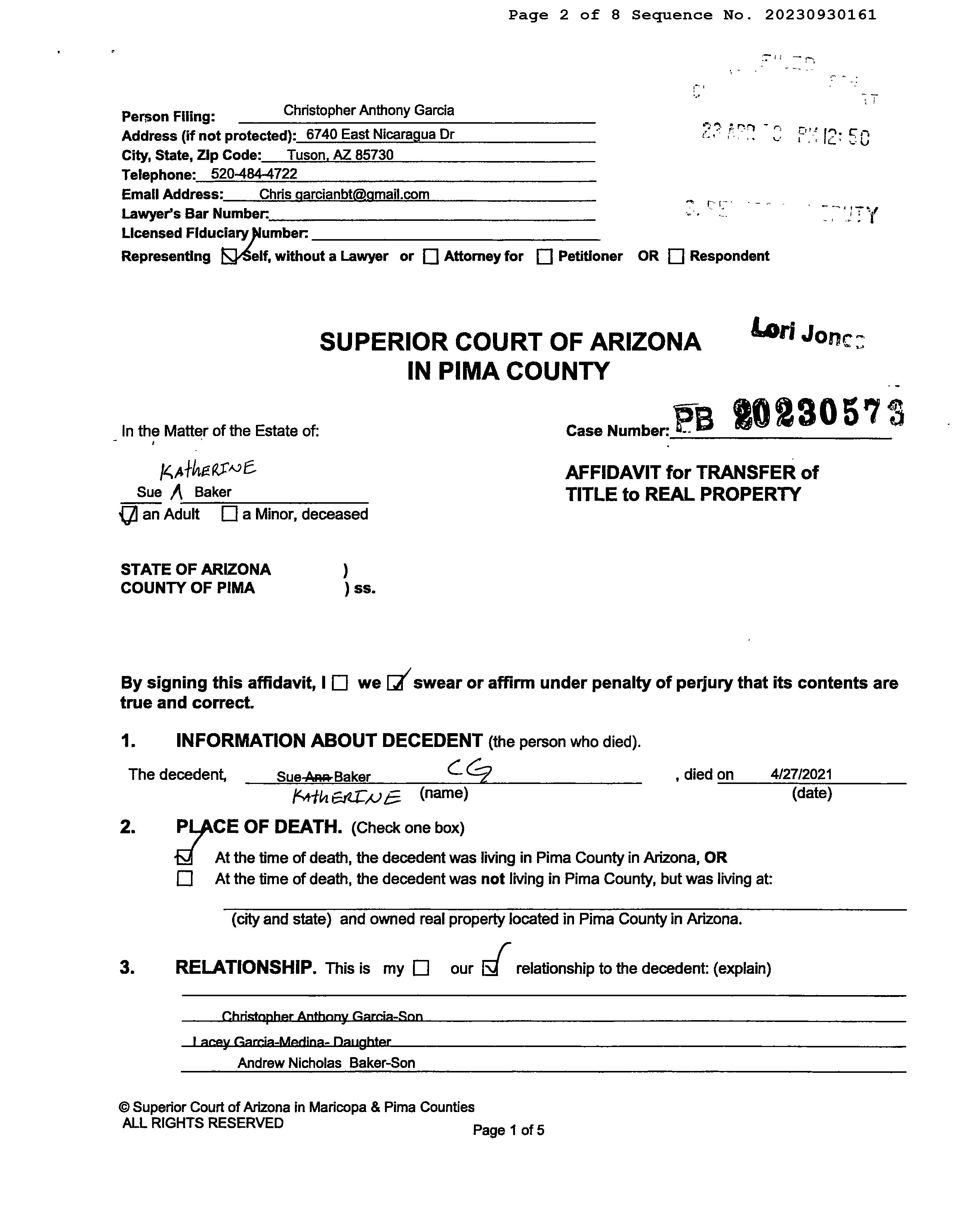 Mailing Address : 6241 S Del Moral Blvd, Tucson AZ 85706-5709 C006
