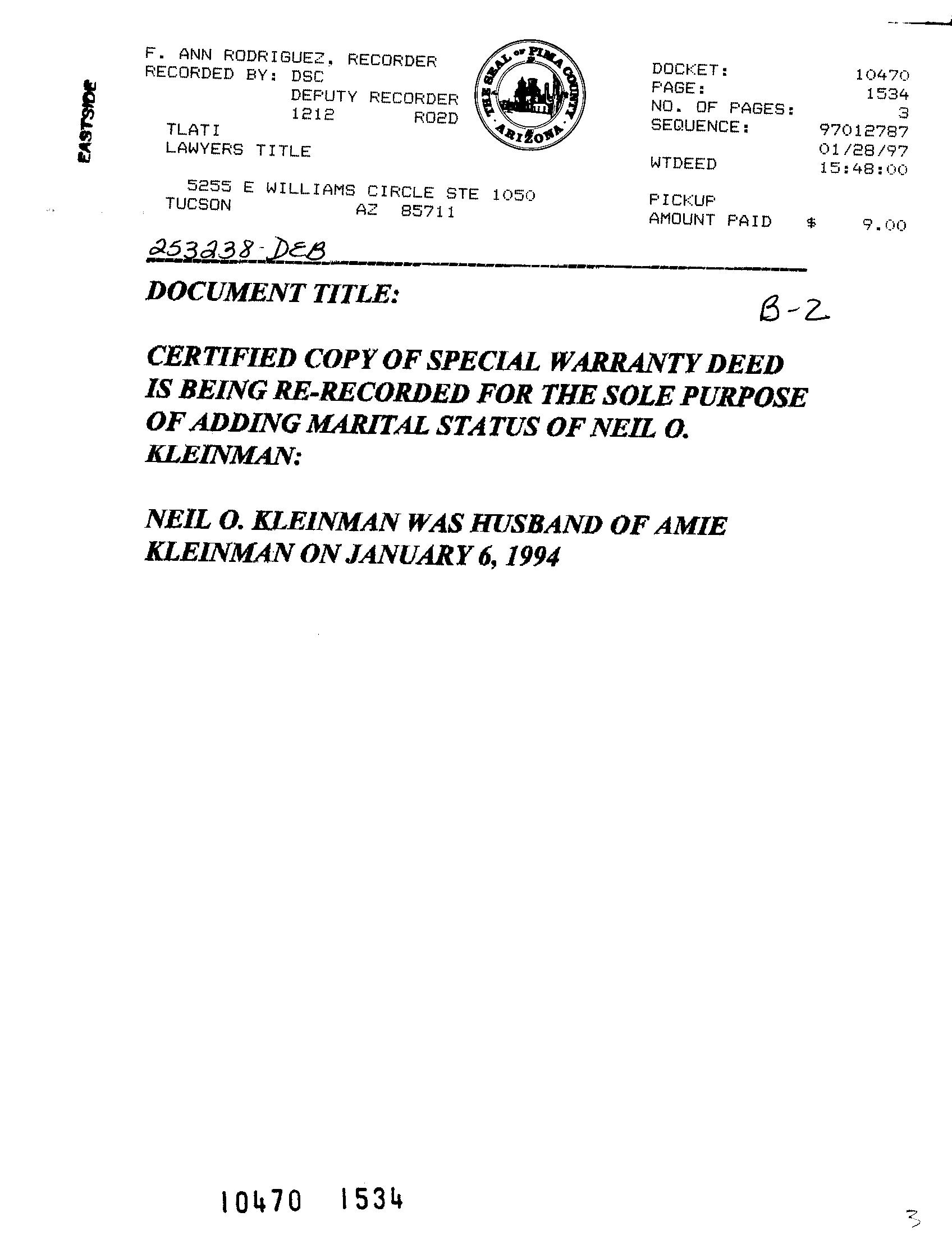 Deed Type : Special Warranty Deed