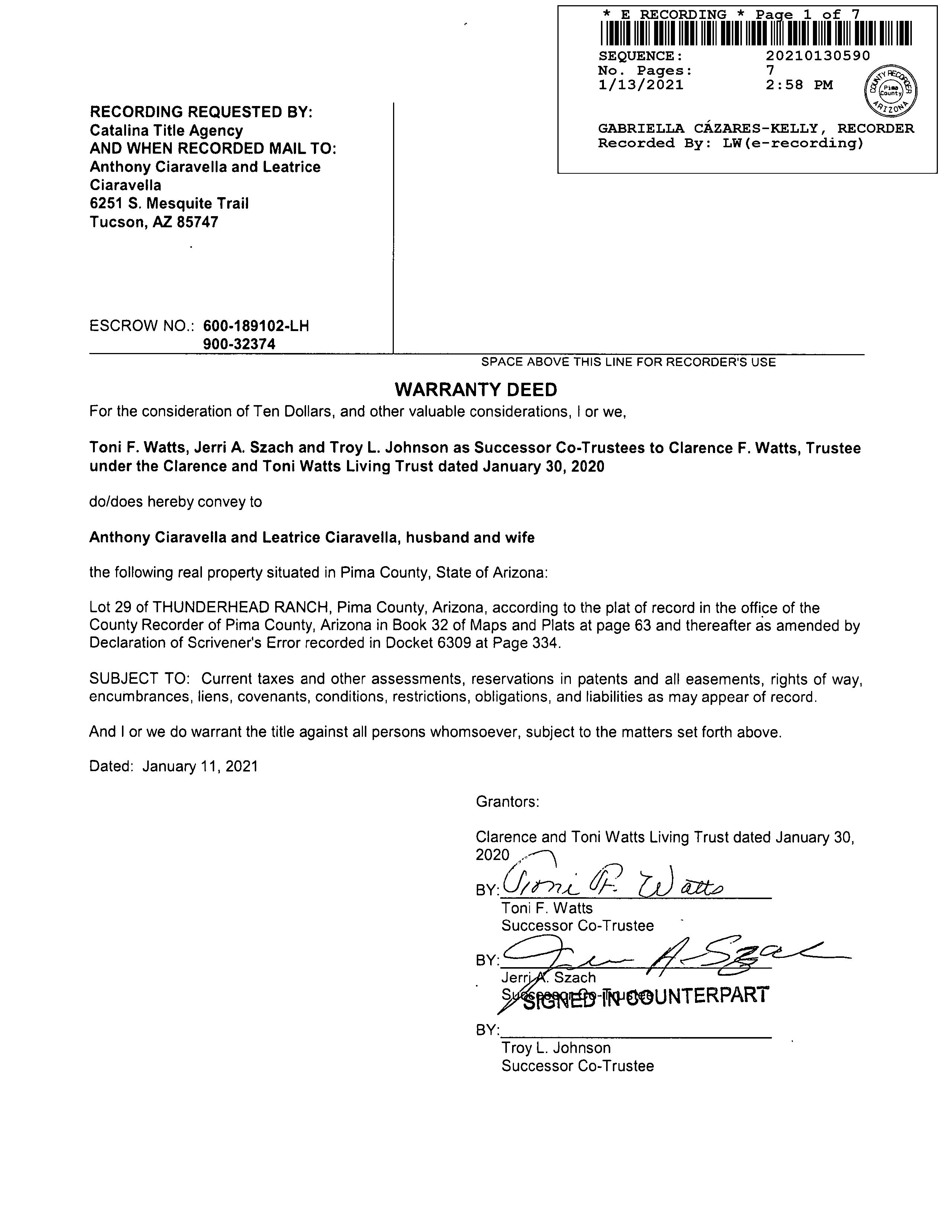 Seller Name : Watts Clarence & Toni