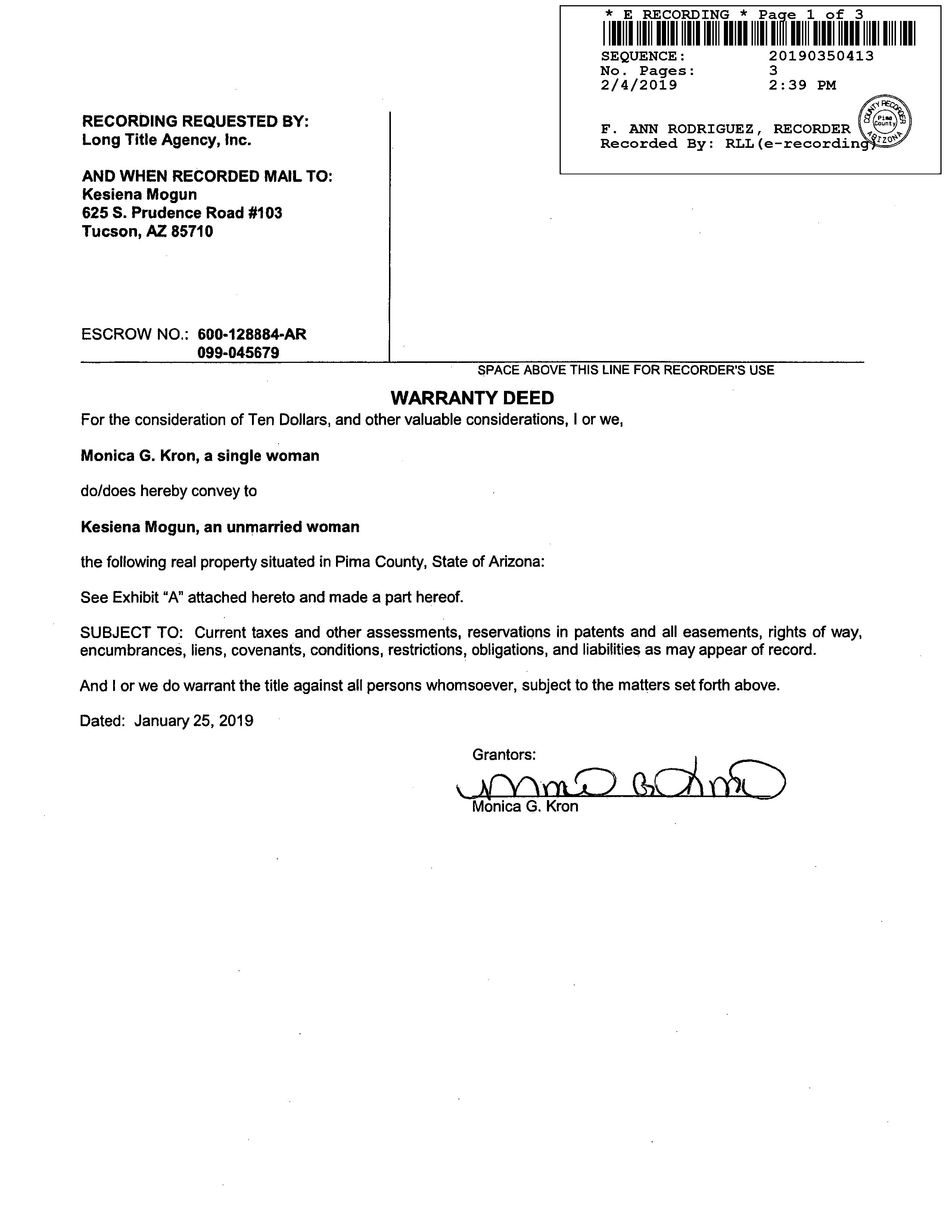 Prior Rec/Sale Date : 02/04/2019 / 01/25/2019