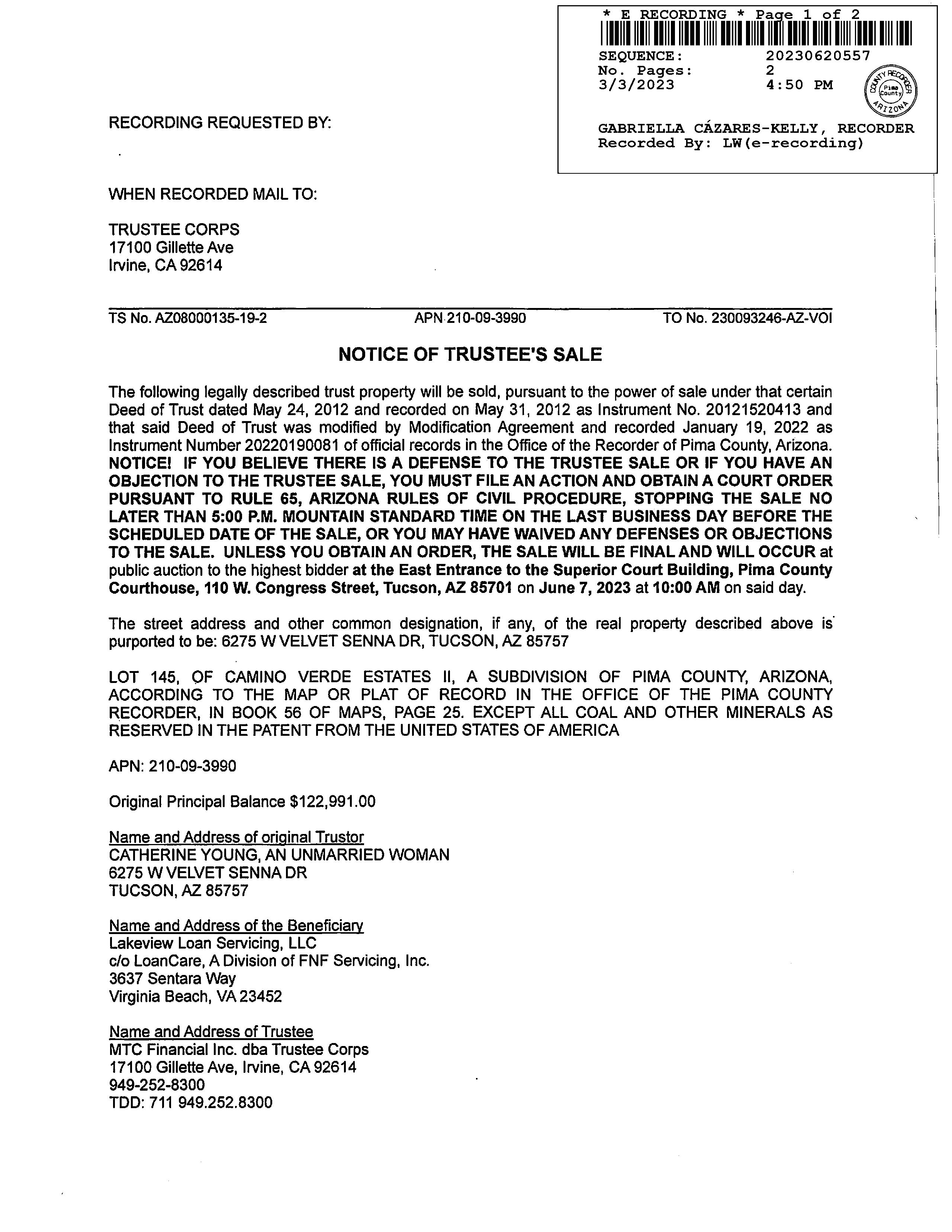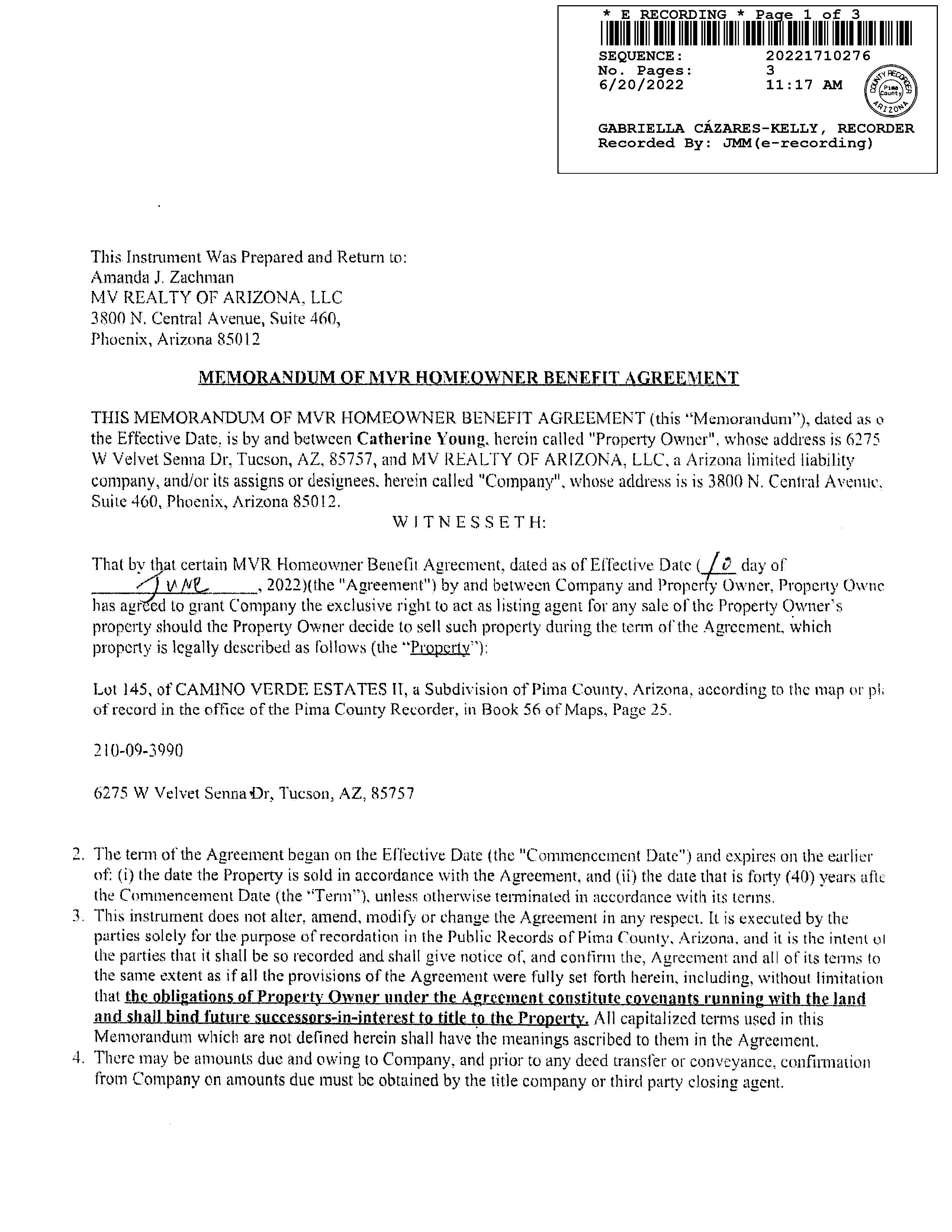 #1 6265 W Velvet Senna Dr Tucson Az 85757 Owner Name: Jerezano Garron /Jerezano Yesenia