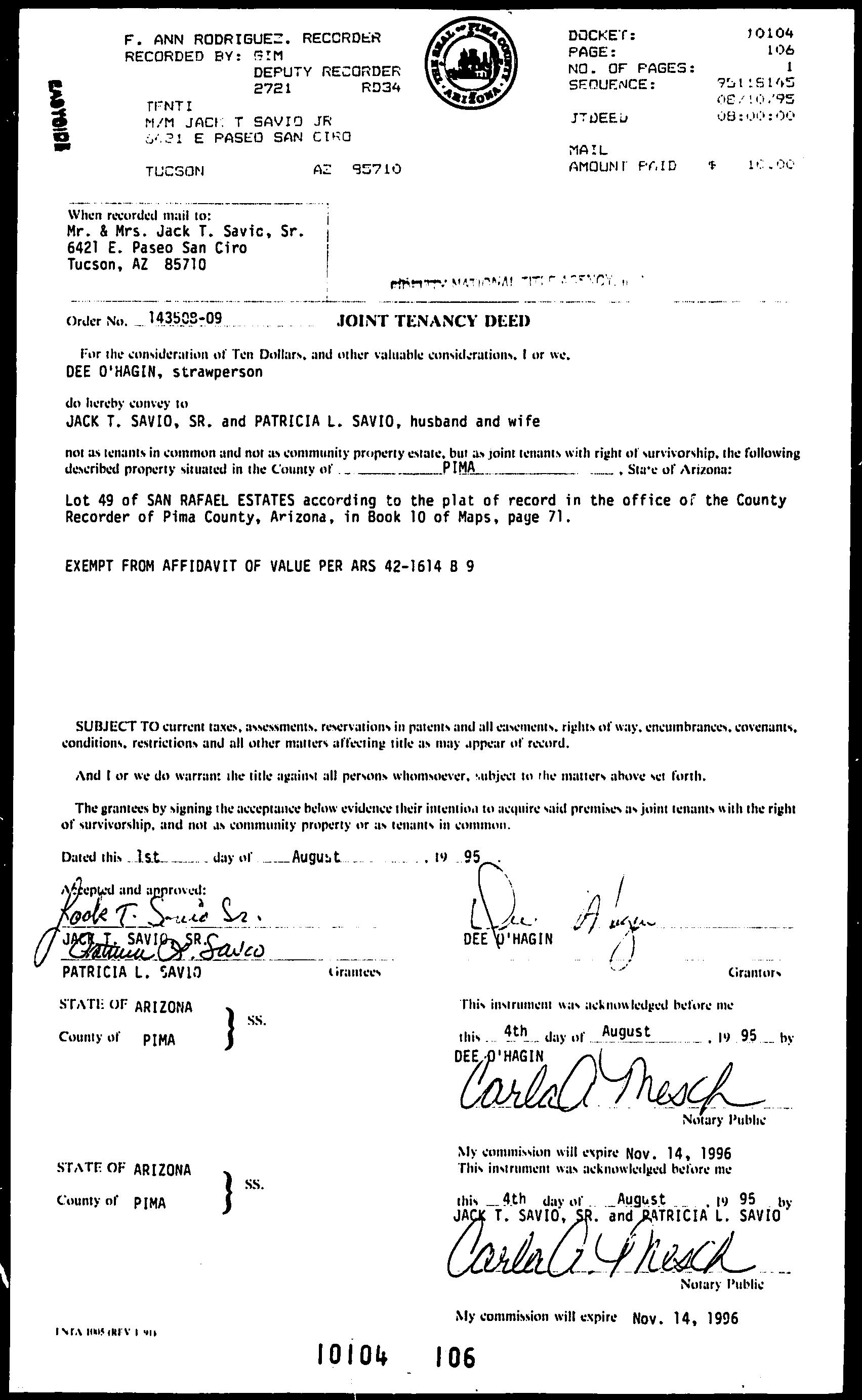 Owner Name : Savio Jack T Sr / Savio Patricia L