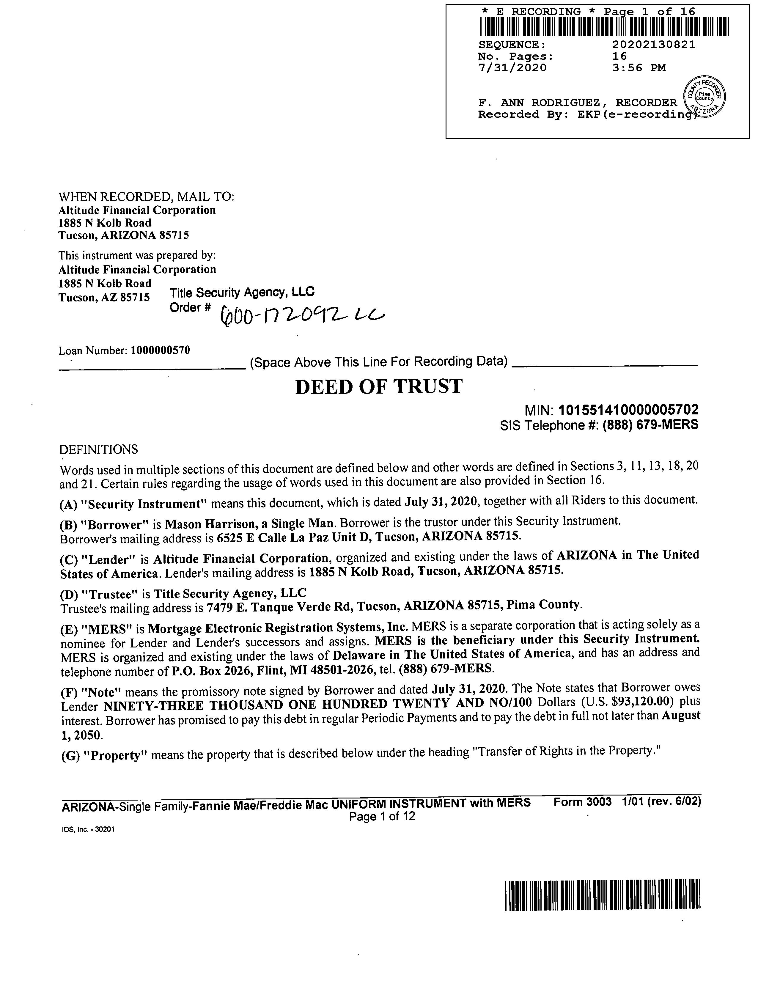 Recording/Sale Date : 07/31/2020 / 07/28/2020 1st Mtg Amount/Type : $93,120 / Cnv