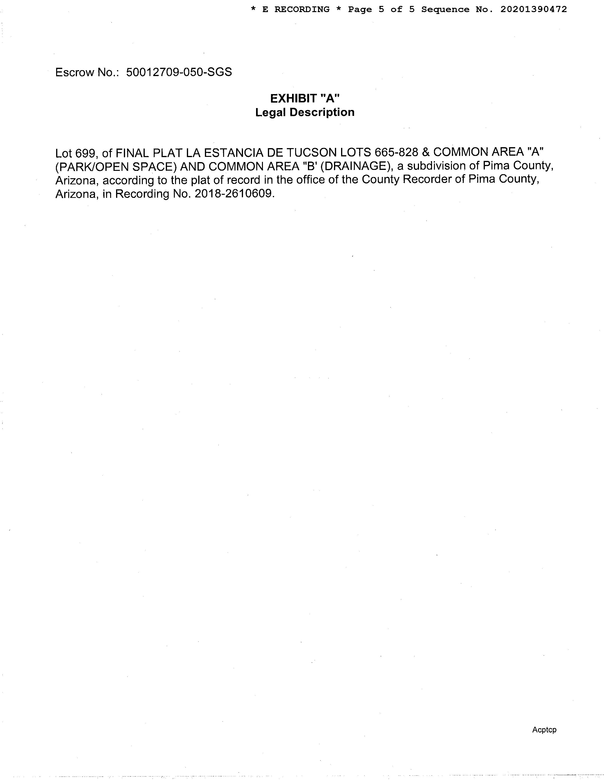 LEGAL: LA ESTANCIA DE TUCSON SQ20182610609 LOT 699