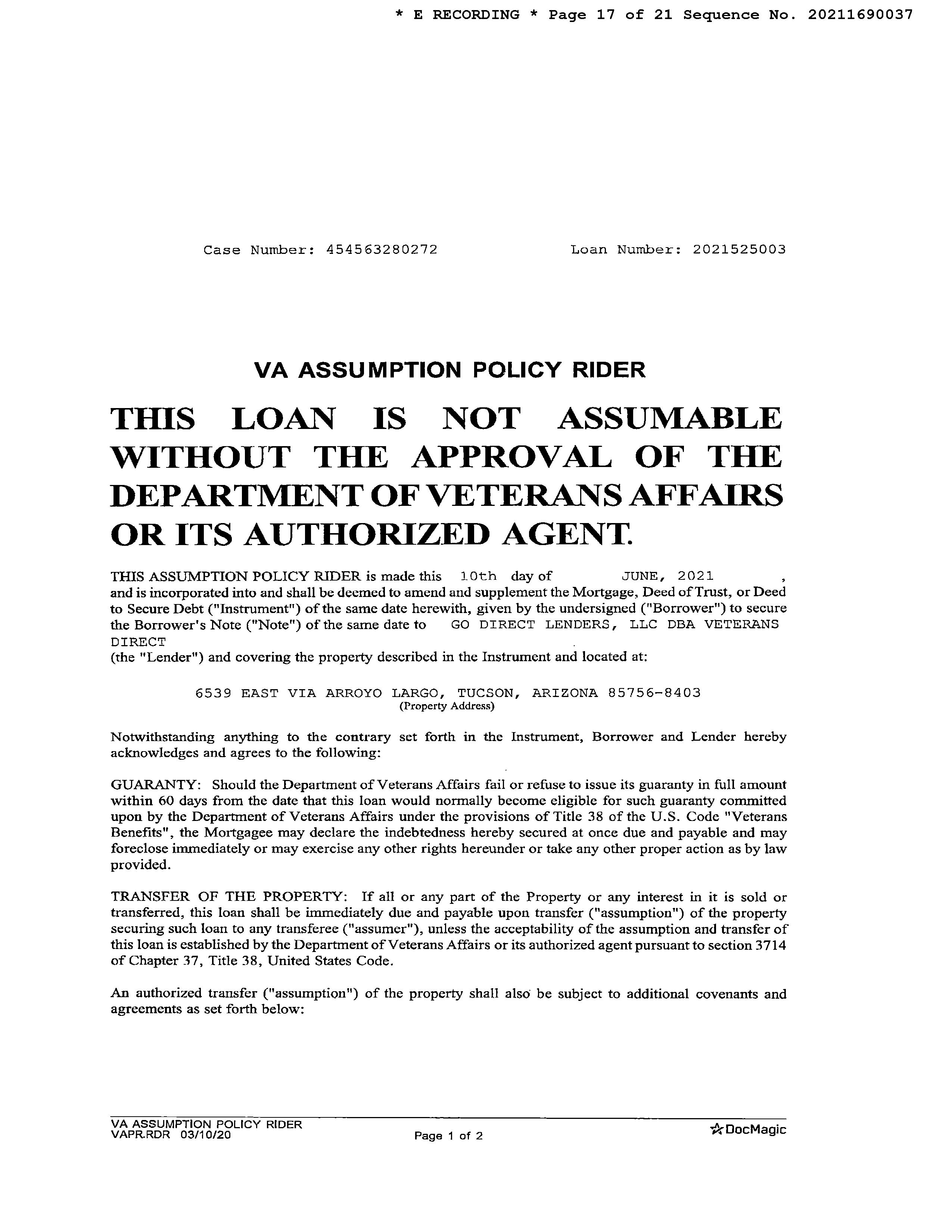 Mailing Address : 6539 E Via Arroyo Largo, Tucson AZ 85756-8403 R070