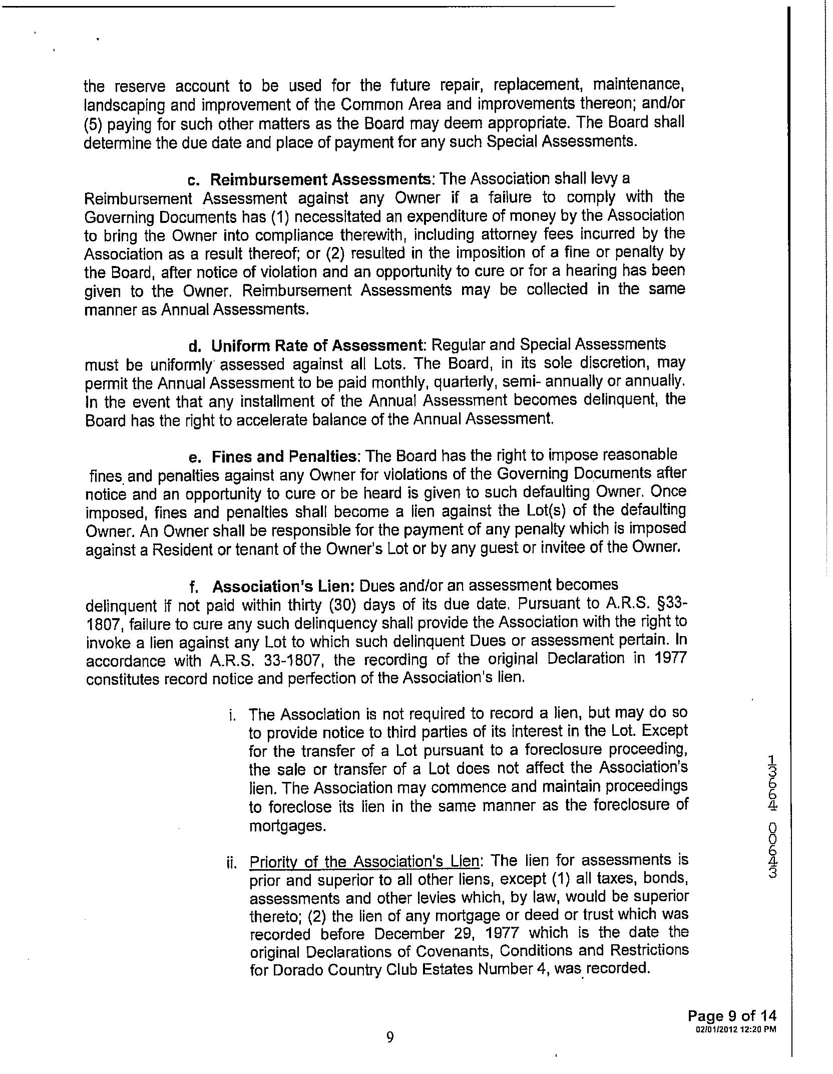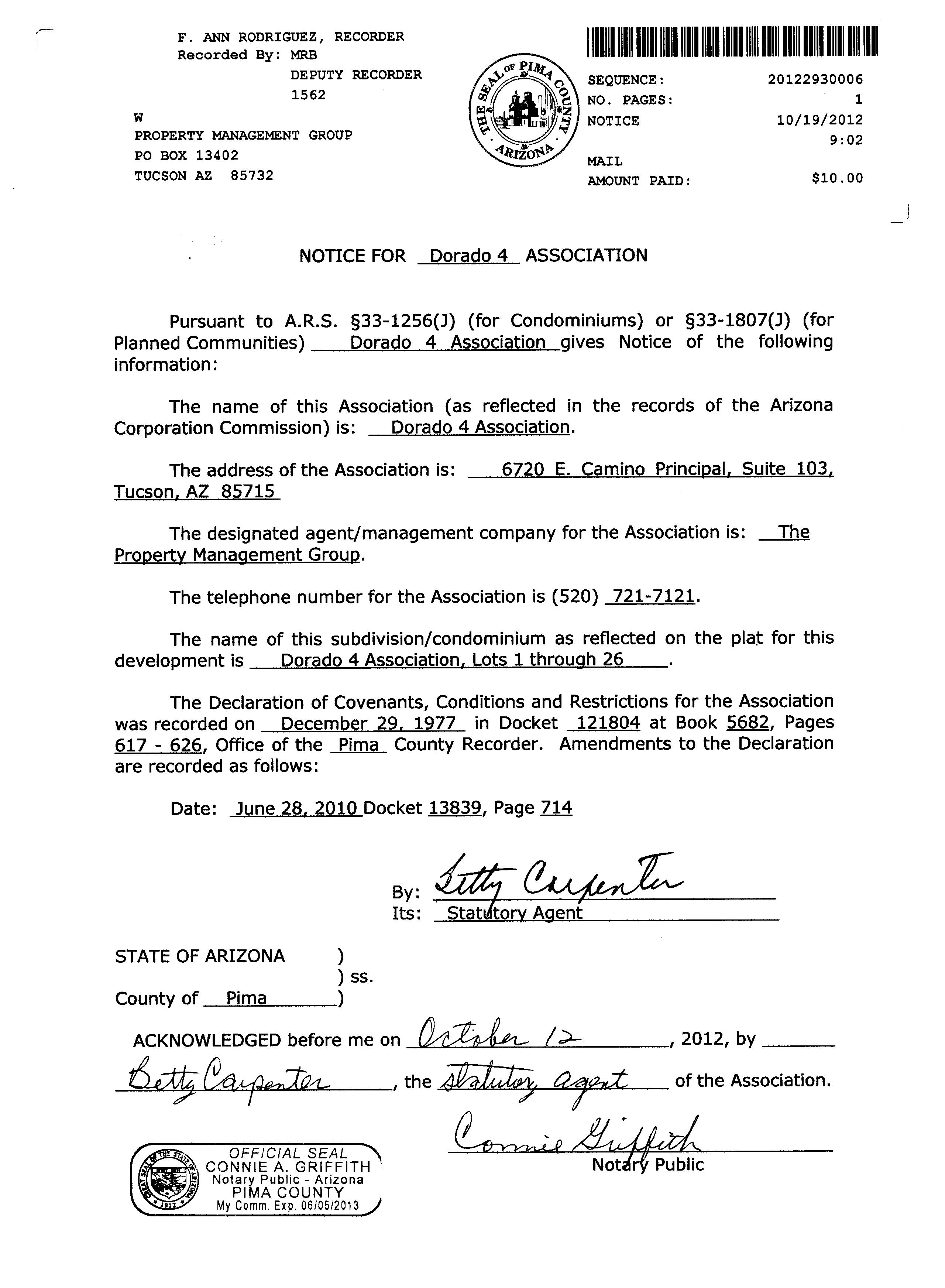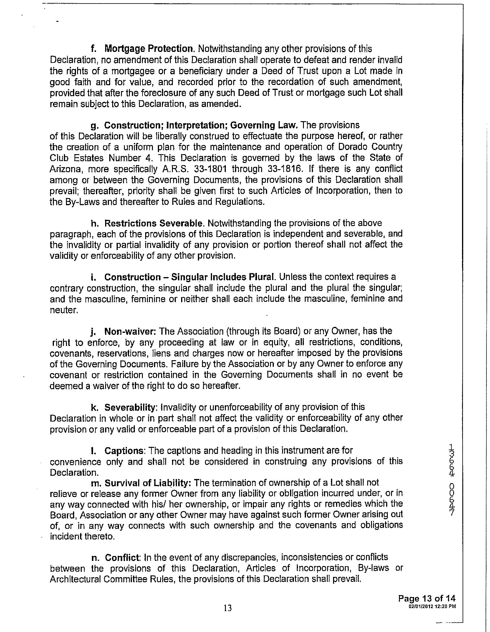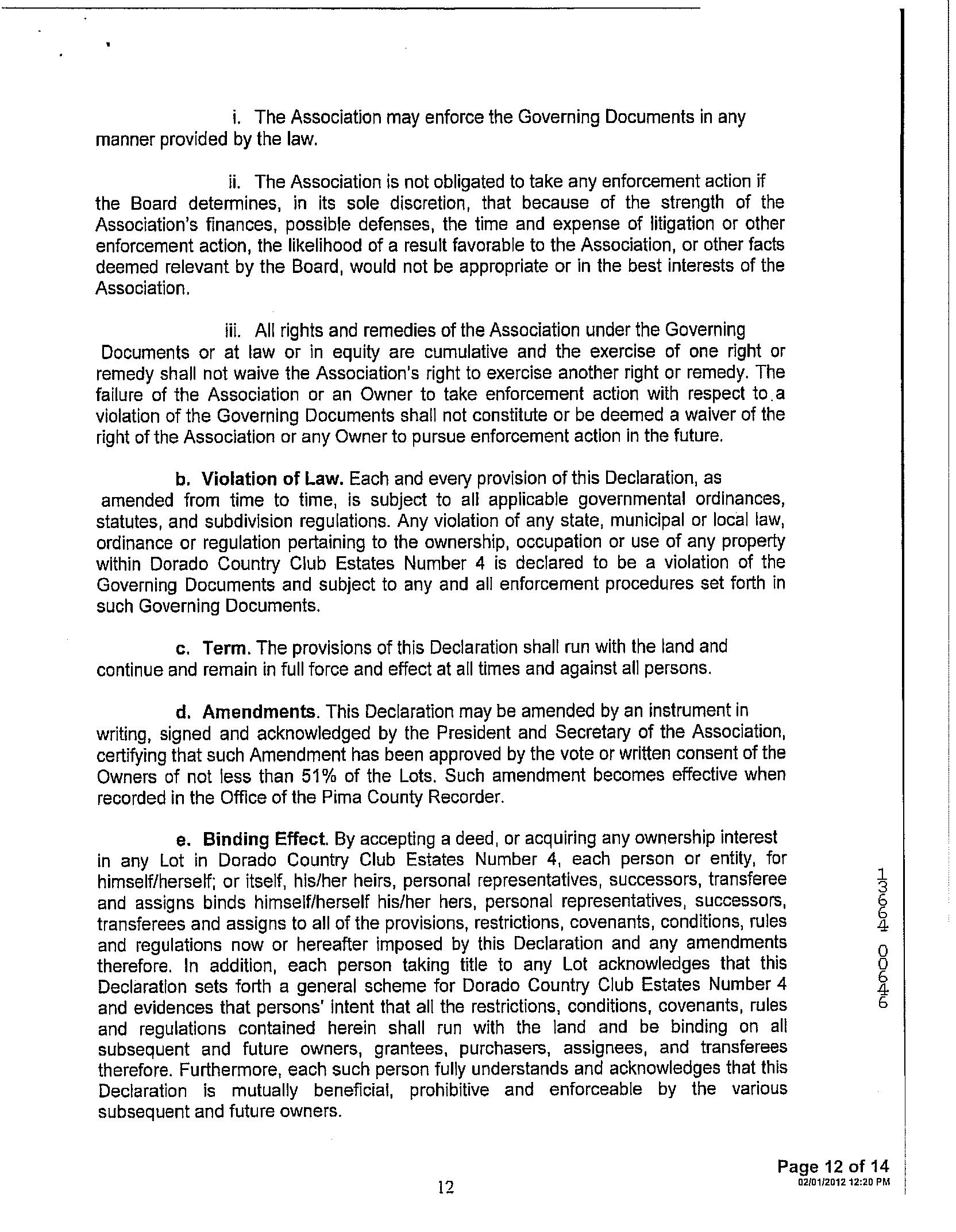 ©2021 First American Financial Corporation and/or its affiliates. All rights reserved. NYSE: FAF 05252610821 COVENANTS, CONDITIONS & RESTRICTIONS PREPARED FOR : First American Title Insurance Company, and the operating divisions thereof, make no express or implied warranty respecting the information presented and assume no responsibility for errors or omissions. First American, the eagle logo, First American Title, and firstam.com are registered trademarks or trademarks of First American Financial Corporation and/or its affiliates. 6551 E. Dorado Blvd Tucson, AZ 85715
