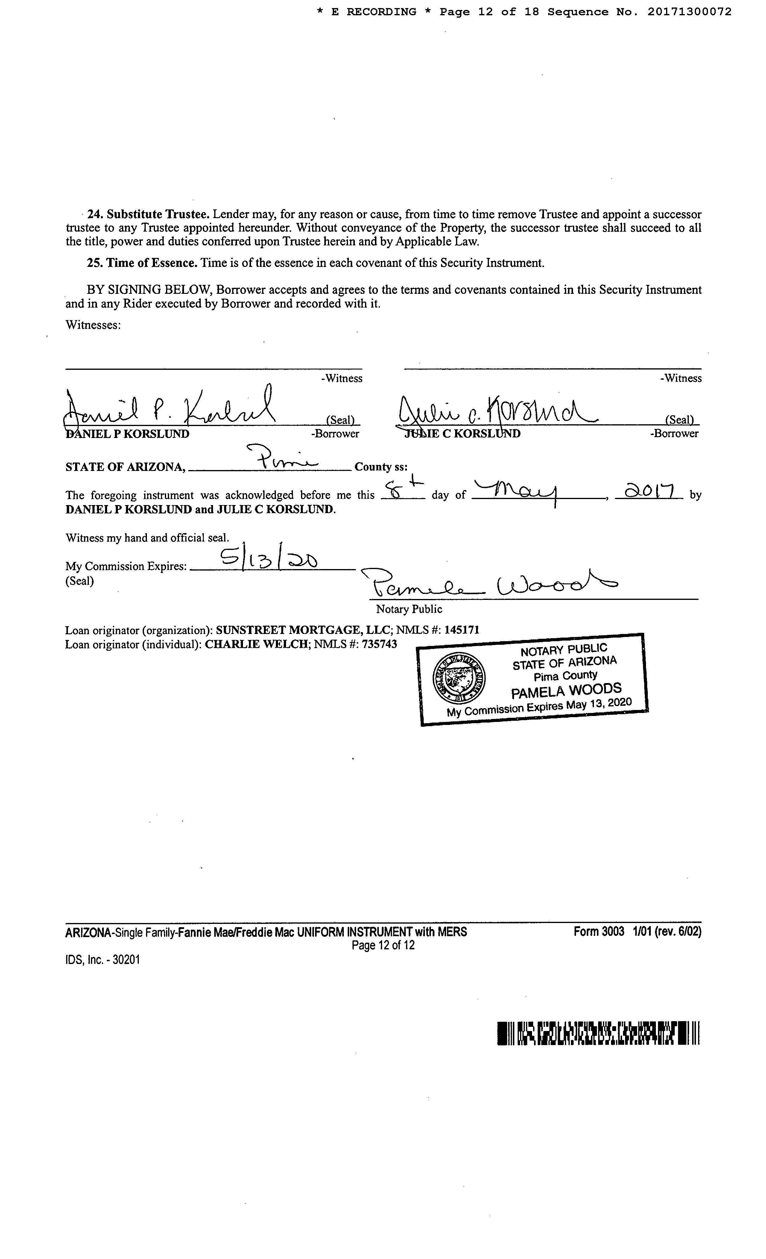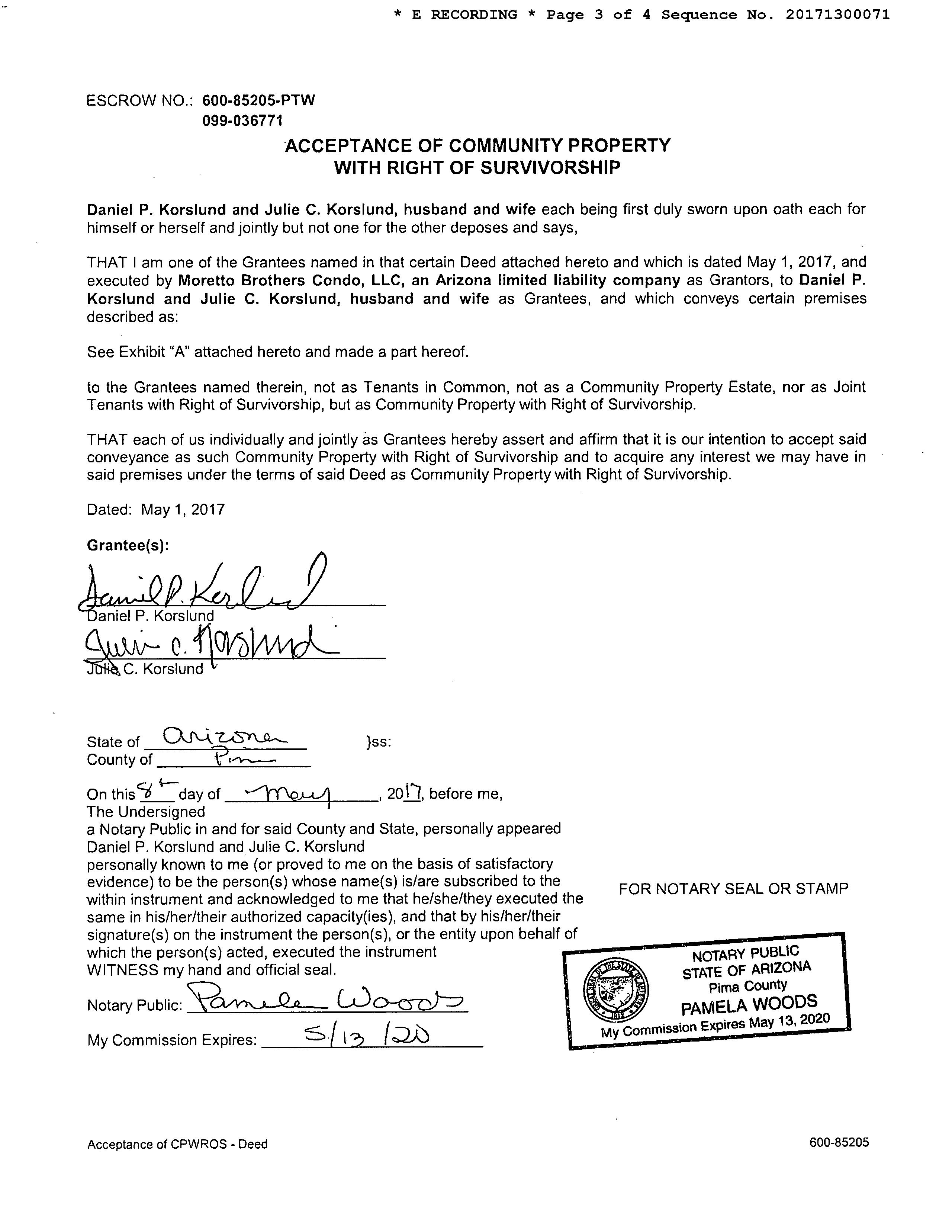 Subject Property: 655 W Vistoso Highlands Dr # 21 Oro Valley Az 85755 Owner Name: Korslund