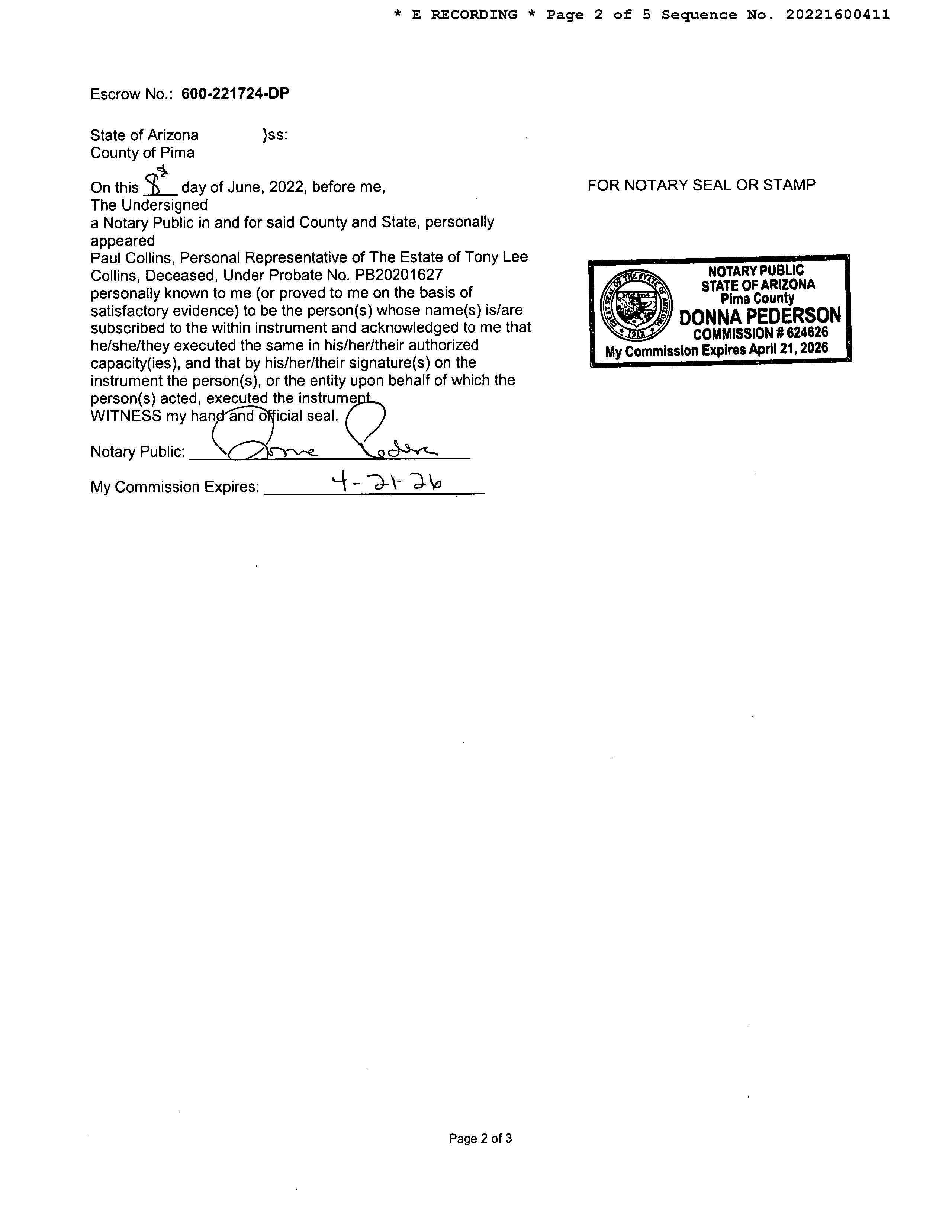 #5 6600 N Skyway Rd Tucson Az 85718 Owner Name: Edmonds Emily /Edmonds Daniel