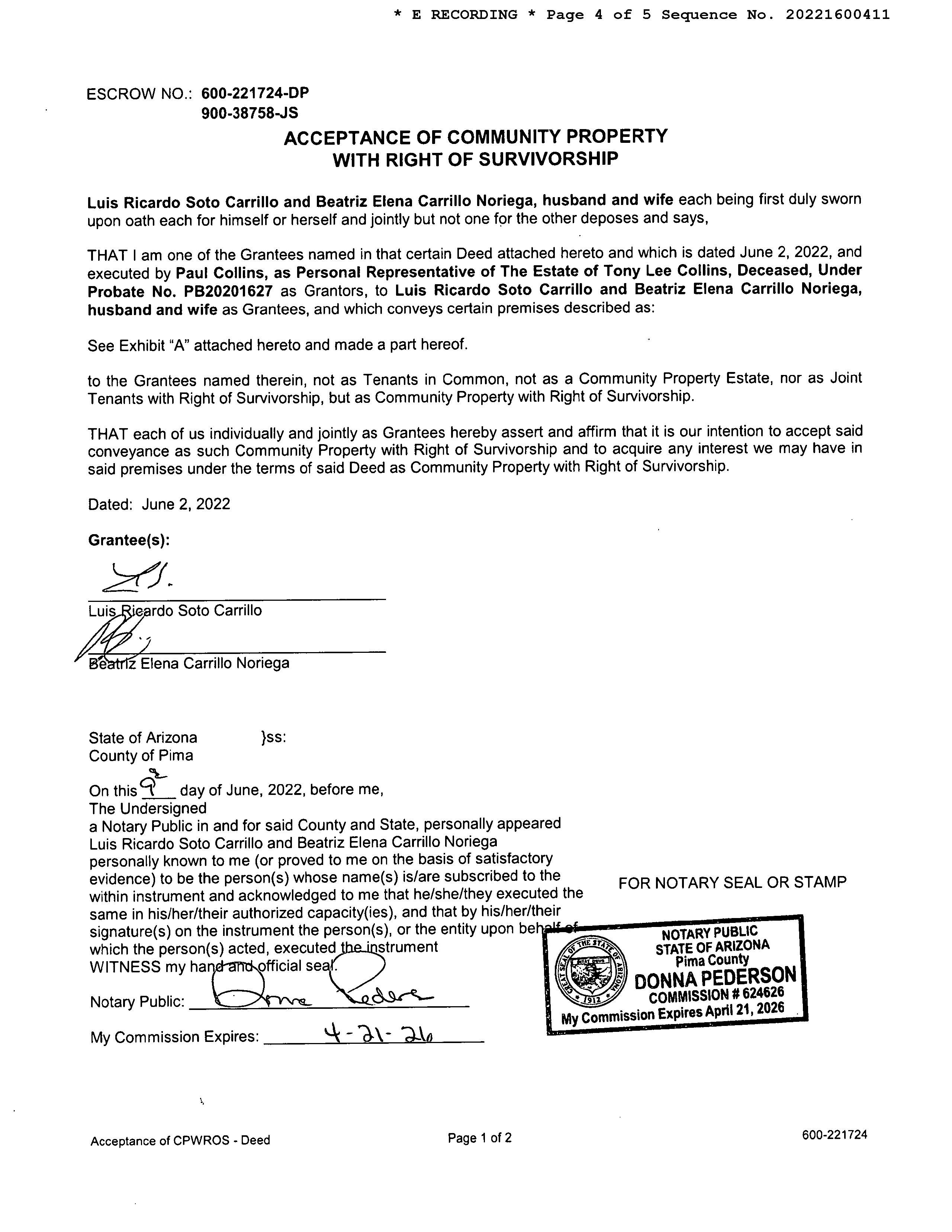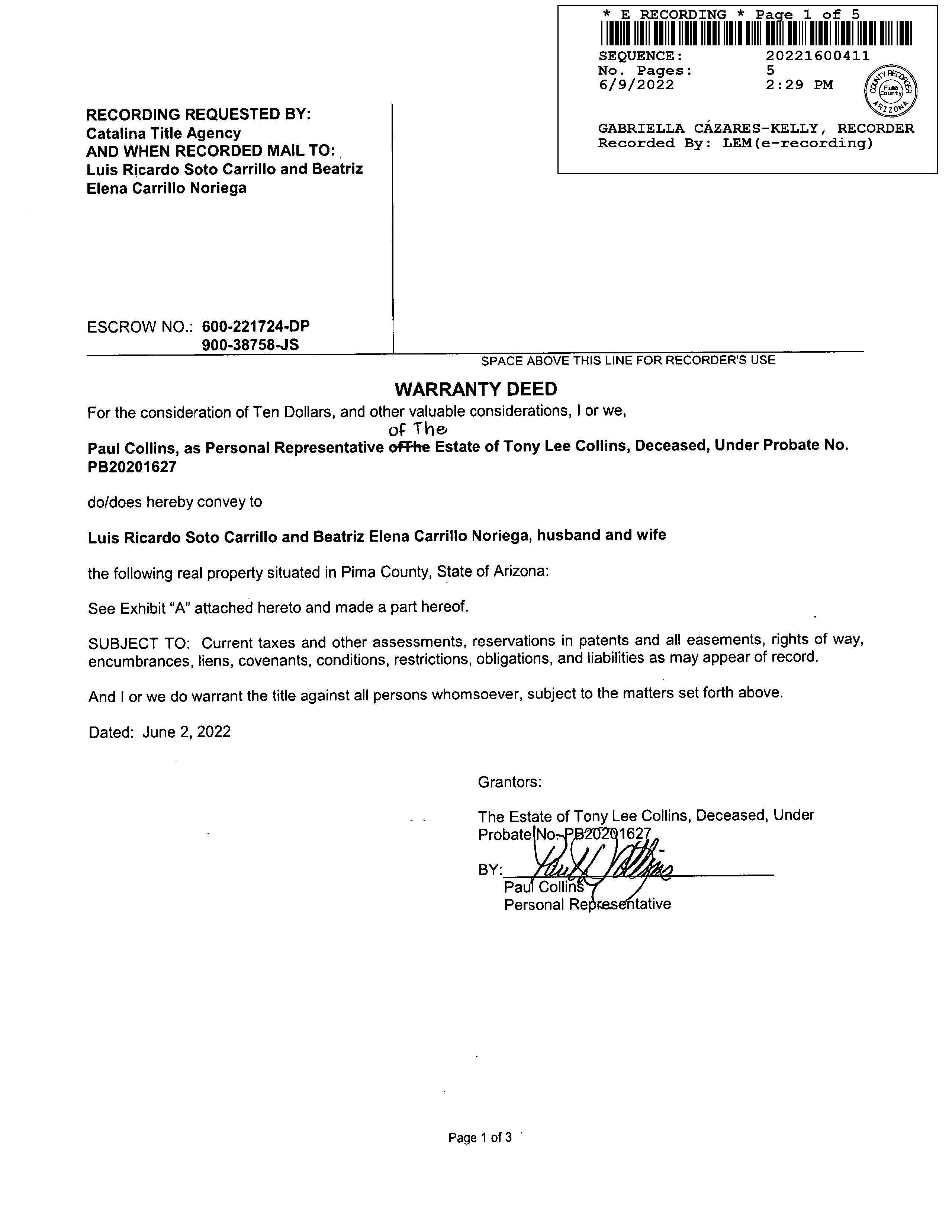 Owner Name: Carrillo Luis R S /Noriega Beatriz E C