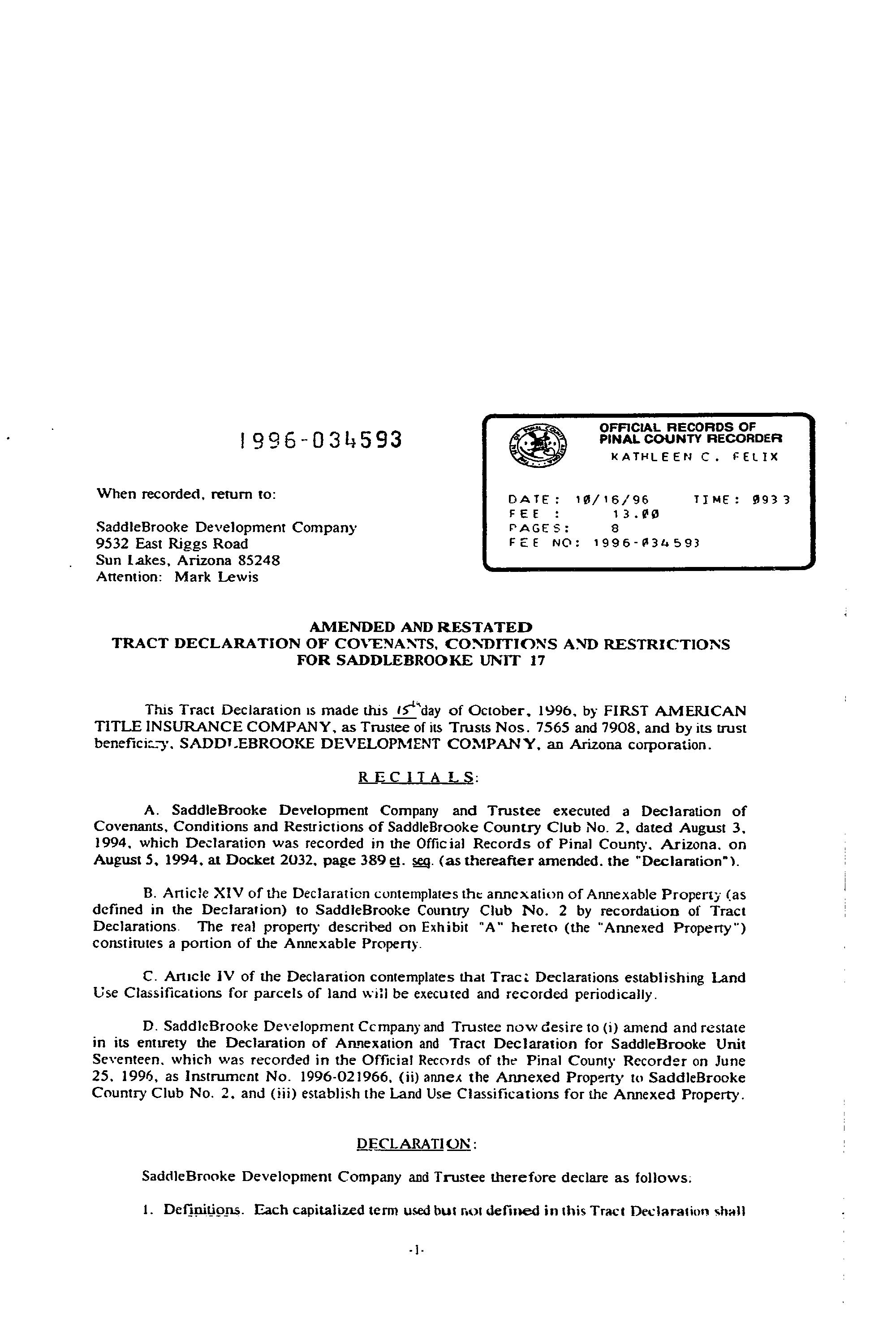 PINAL (PL), AZ Document:RES AMD 1996.34593 Page:1 of 8 Printed on:6/27/2023 12:30 PM Branch :FC0 User :JSTI
