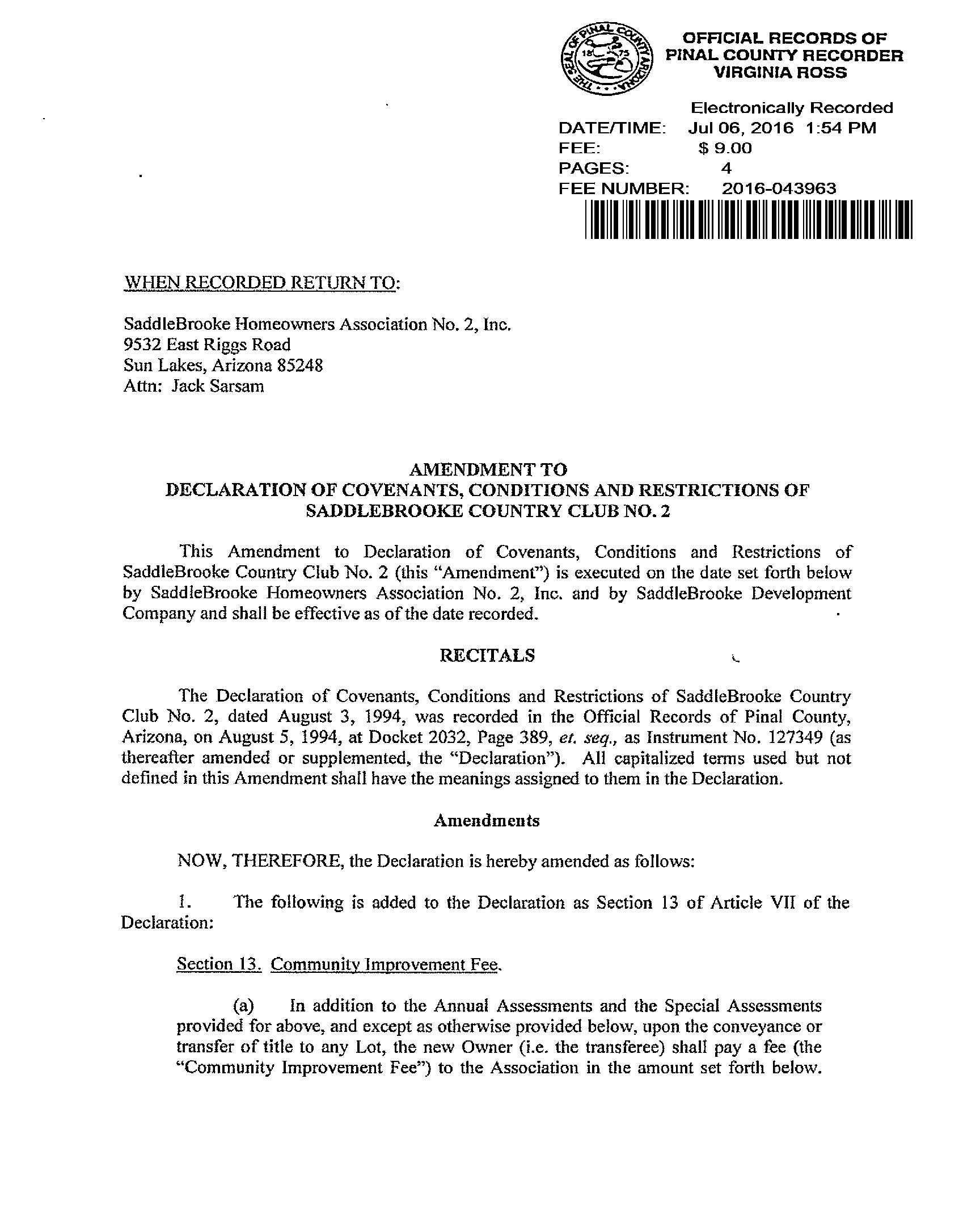 PINAL (PL), AZ Document:RES AMD 2016.43963 Page:1 of 4 Printed on:6/27/2023 12:30 PM Branch :FC0 User :JSTI