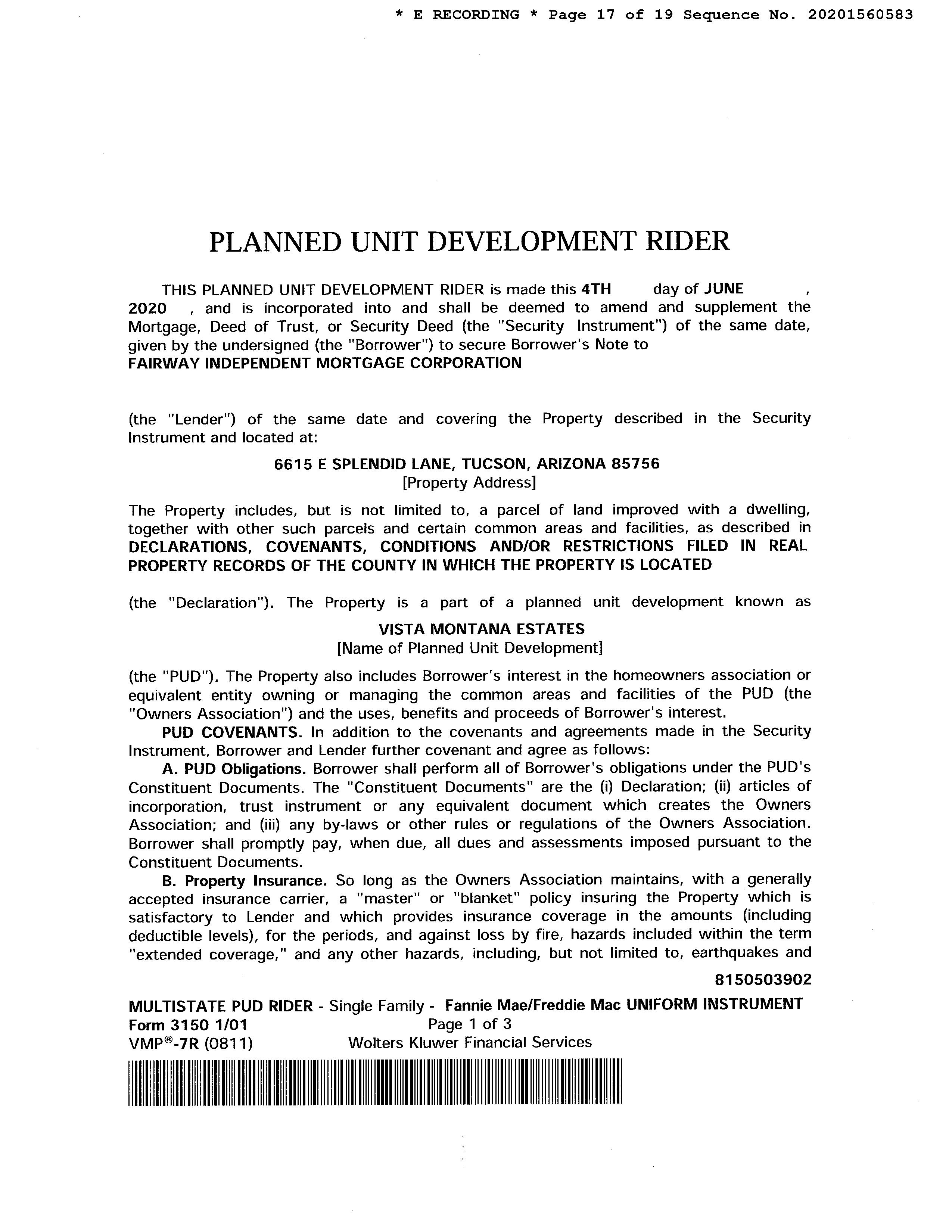Subject Property : 6615 E Splendid Ln Tucson AZ 85756