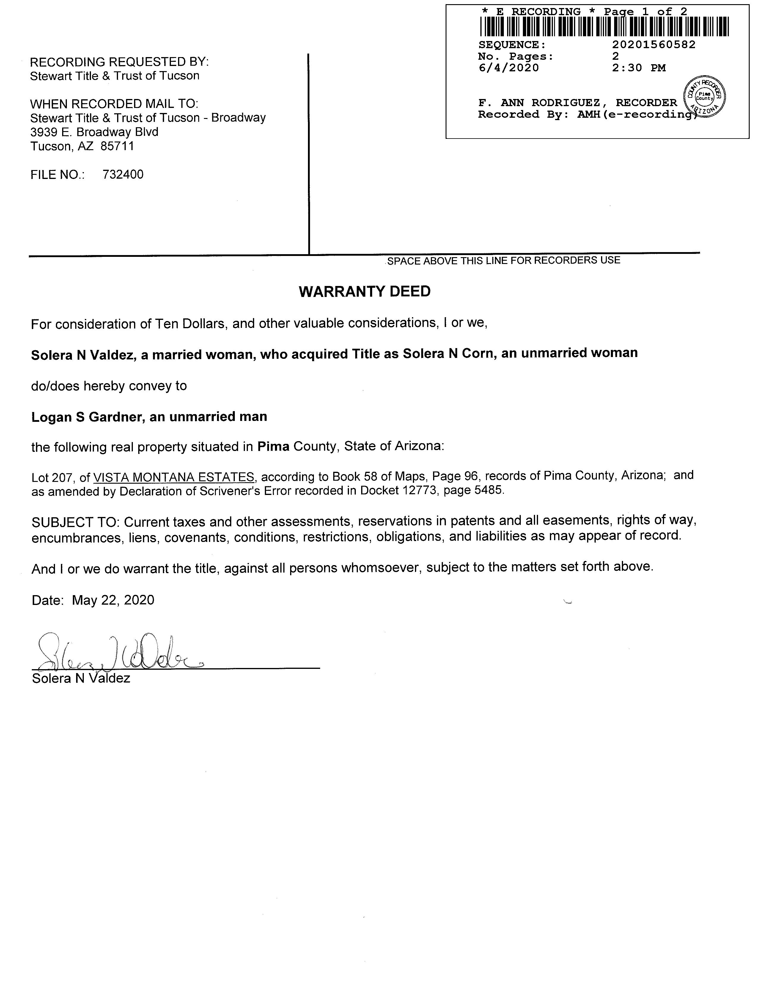Deed Type : Warranty Deed