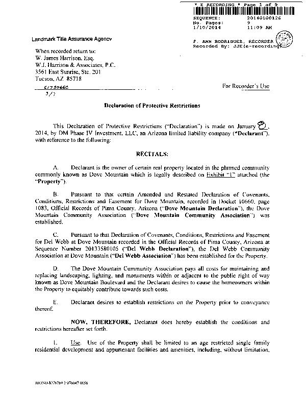 Deed Type: Corporation Grant Deed Land Use: Sfr Subdivision / Tract: Del Webb/dove Mountain / Lot Size: 6,088 Year Built / Eff: 2015 / Rec. Date / Price: 04/06/2015 / $331,002 Living Area: 1,859 # of units: Document #: 960080 Bedrooms: Pool: Pool Total Tax Value: $317,904 Bath(F/H): /