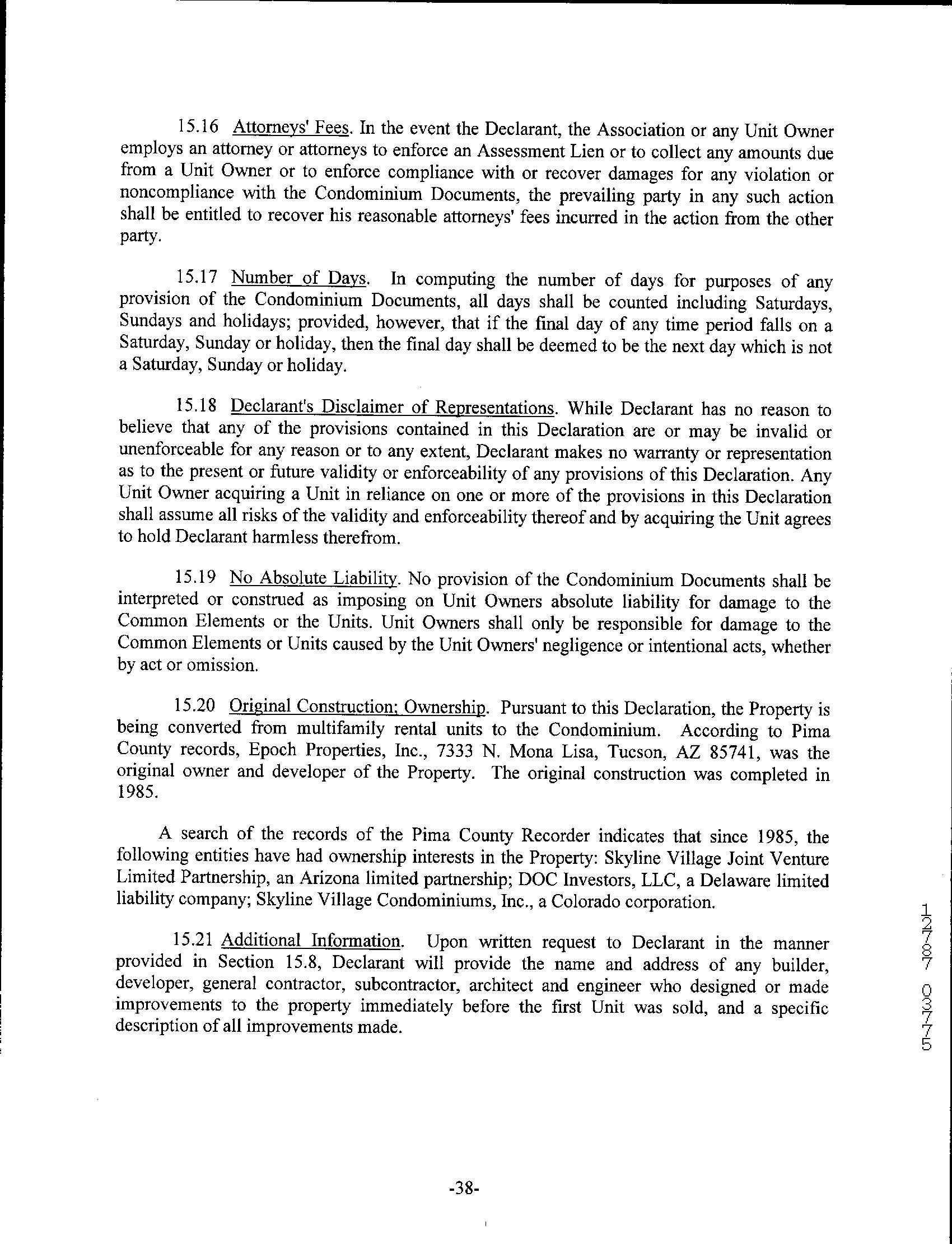 Legal Description : Skyline Village Condominium Bldg 15 Unit 133 & .720 % Int In Common Elements