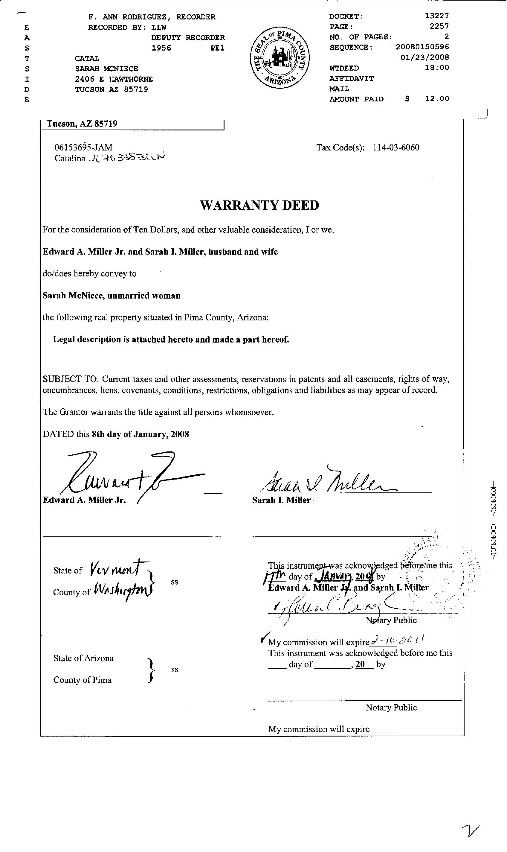 Owner Name: Mc Niece Sarah /Unit 3440 Box 407 APN / Alternate APN: 114-03-6060 / Deed Type: Wd