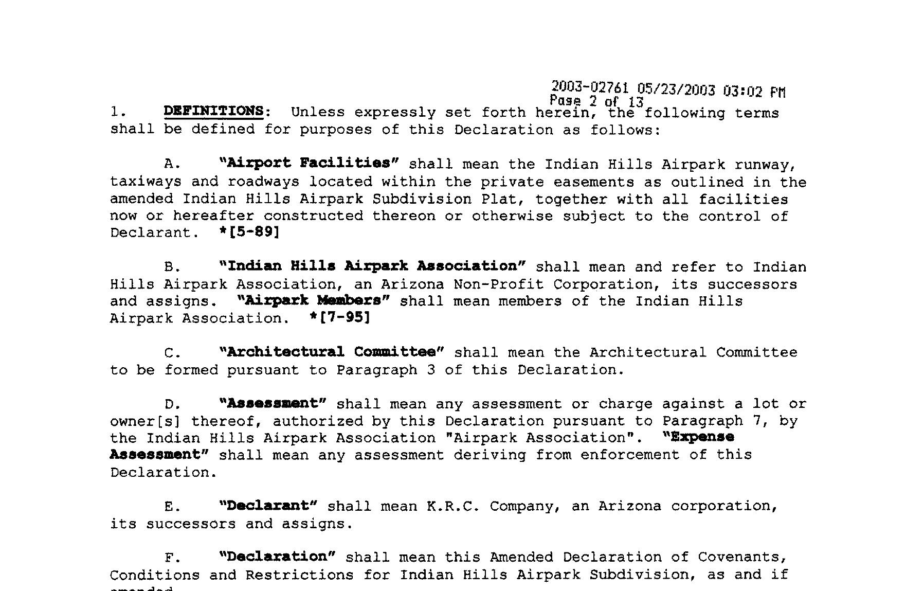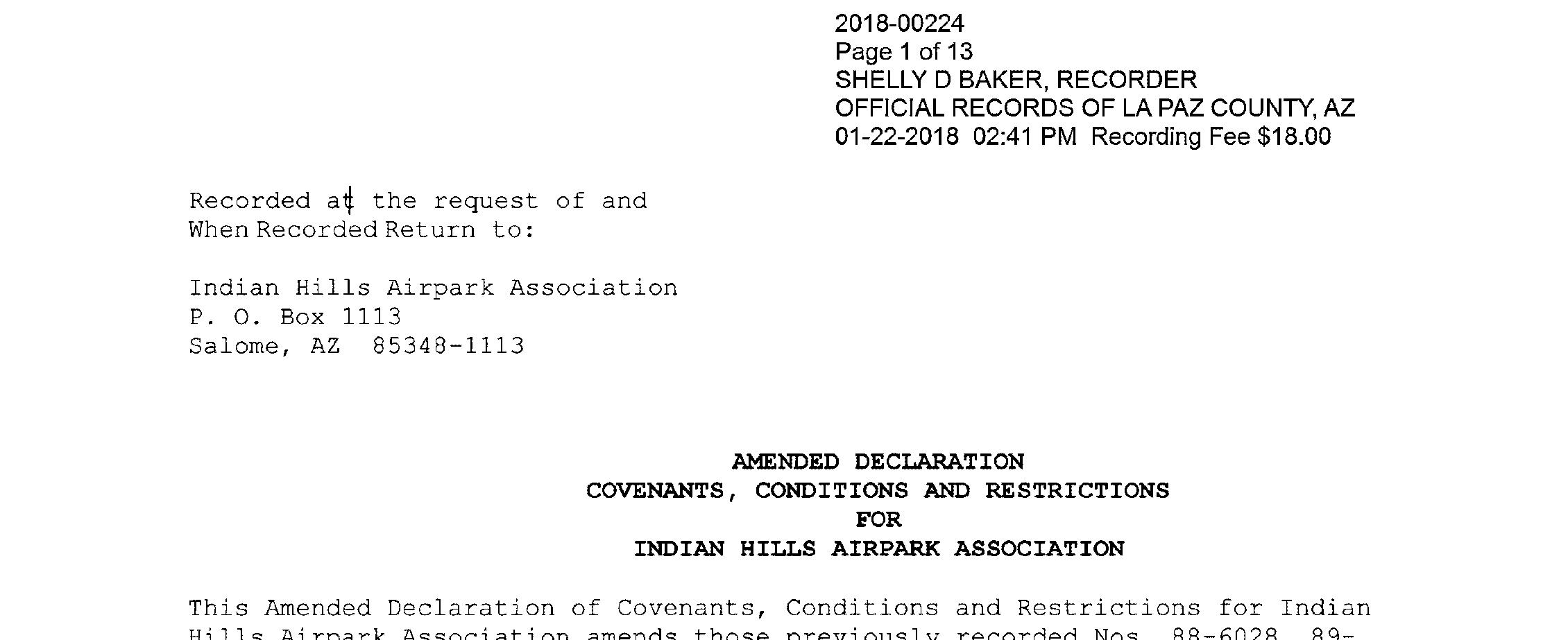 Legal Description : Subdivision: Indian Hills Airpark Unit 2 Lot: 15 & An Undivided Interest In Runway, Taxiways & Roadways Also Known As Airpark Facilities.