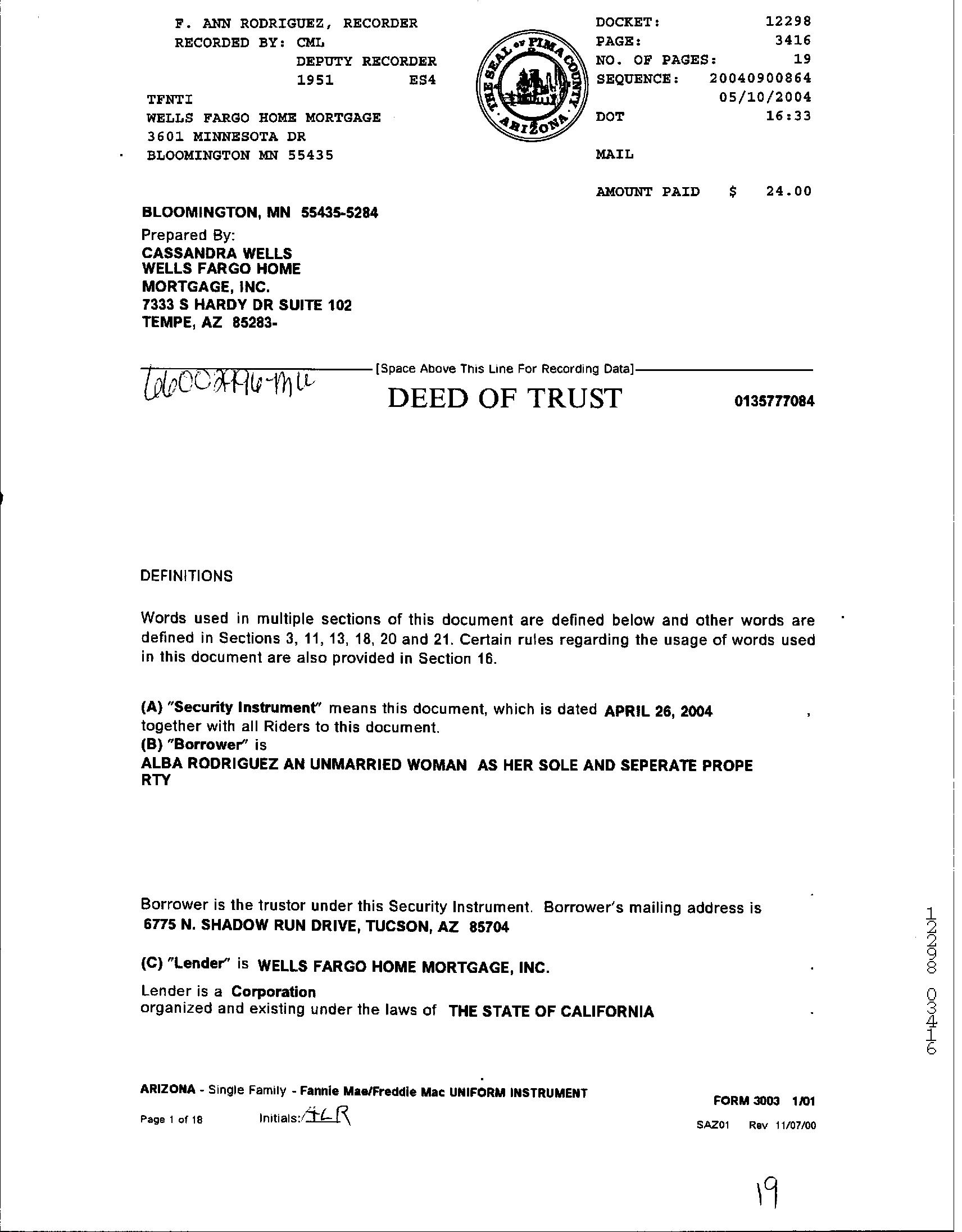 #3 6738 N Shadow Run Dr Tucson Az 85704 Owner Name: Ward David L /Ward Shelley