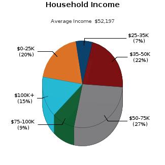 Census Tract / block: 44.23 / 1 Year: 2018 Household Population Population by Age Count: 4,147 0 - 11 Estimate Current Year: 4,077 12 - 17 Estimate in 5 Years: 3,810 18 - 24 7.76% Growth Last 5 Years: 3.11% 25 - 64 50.52% Growth Last 10 Years: -136.53% 65 - 74 15.77% 75+ Household Size Household Income Current Year: 1,722 0 - $25,000 19.57% Average Current Year: 2.41 $25,000 - $35,000 6.68% Estimate in 5 Years: 1,826 $35,000 - $50,000 22.07% Growth Last 5 Years: 5.17% $50,000 - $75,000 27.29% Growth Last 10 Years: 1.78% $75,000 - $100,000 9.12% Male Population: 47.6% Above $100,000 15.27% Female Population: 52.4% Average Household Income: $52,197 Married People: 56.21% Unmarried People: 43.79% Housing Median Mortgage Payments Home Values Under $300: 12.88% Below $100,000: 45.49% $300 - $799: 31.18% $100,000 - $150,000: 25.29% $800 - $1,999: 51.37% $150,000 - $200,000: 12.61% Over $2,000: 4.58% $200,000 - $300,000: 8.69% Median Home Value: $105,800 $300,000 - $500,000: 5.82% Unit Occupied Owner: 88.85% Above $500,000: 2.09% Median Mortgage: $806