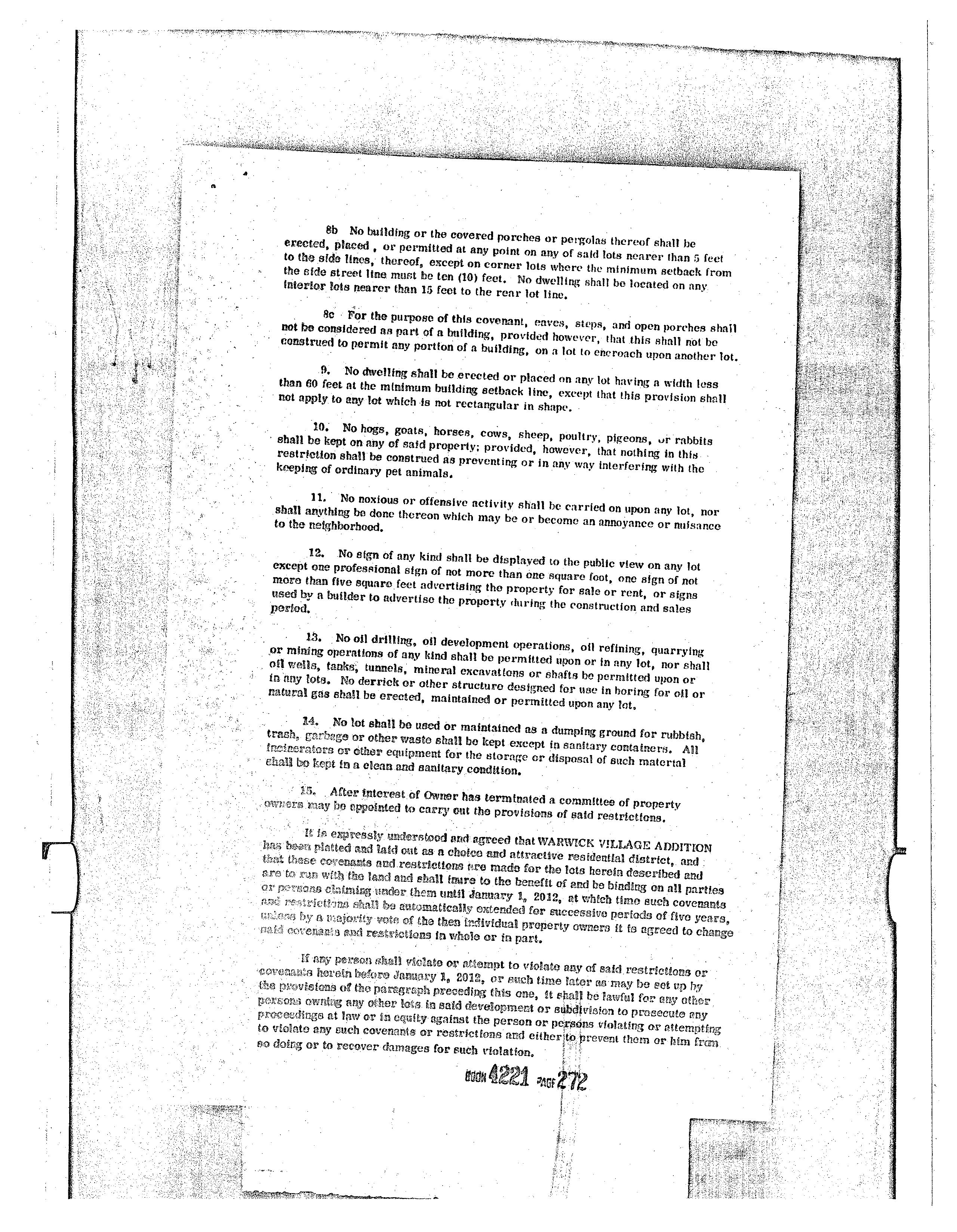Warranty Deed Land Use: Sfr Subdivision / Tract: Warwick Village Add